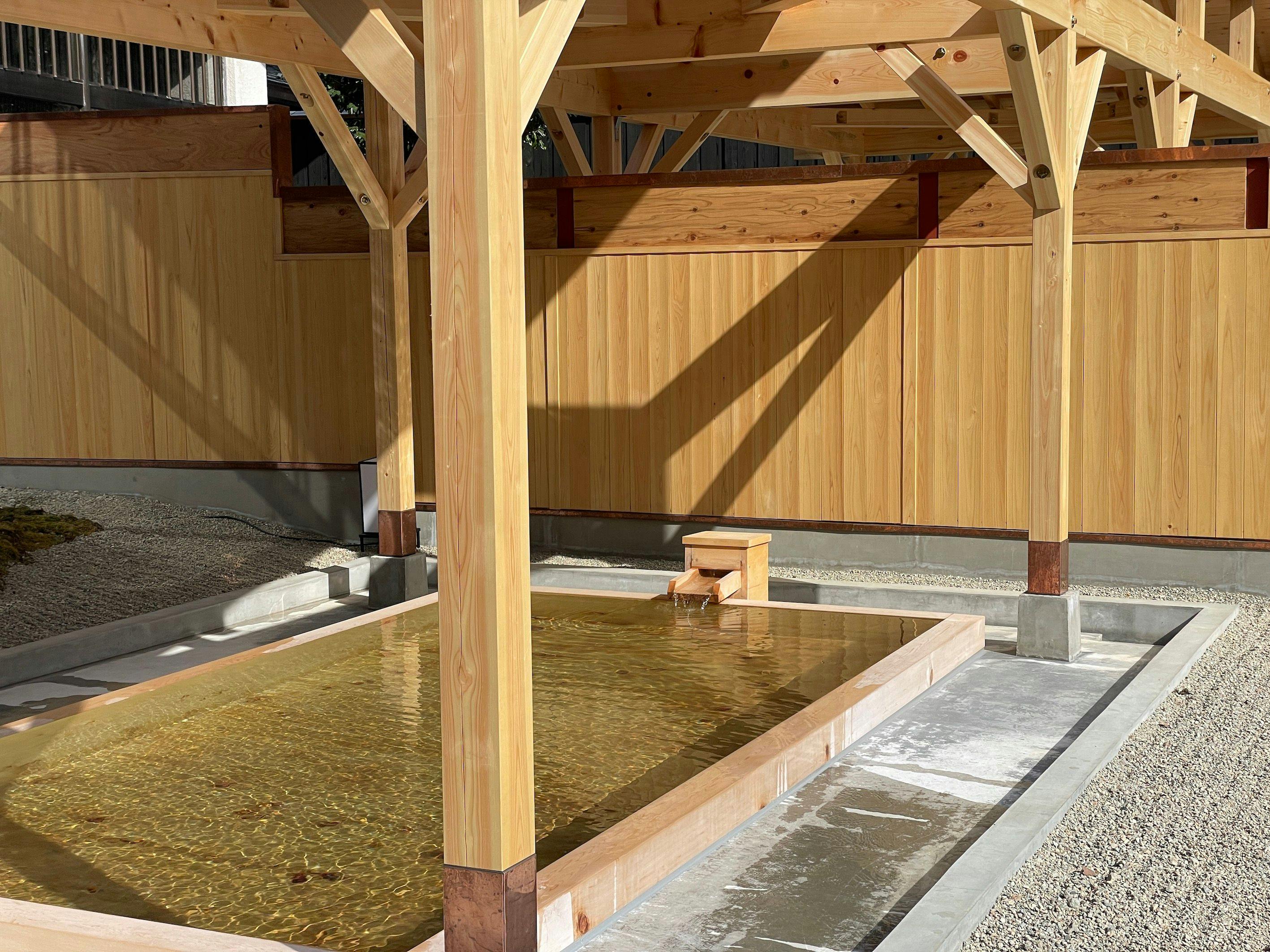 内湯の大檜風呂は、源泉100%かけ流しの硫黄泉。四季折々の木々を眺めながら、効能豊かなにごり湯を満喫できます。徒歩5分以内で行ける共同浴場も複数あり、温泉好きには特にたまらない一軒です。