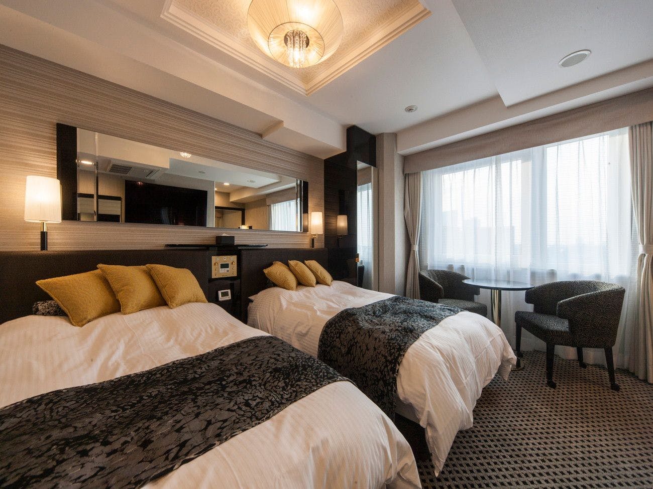 地上の喧騒から離れた特別な空間を楽しむ都会のラグジュアリーリゾート。日本の伝統文化を織り交ぜたインテリアと、幅約7mの窓から眼下に東京を一望できる抜群の眺望が特徴の客室です。
