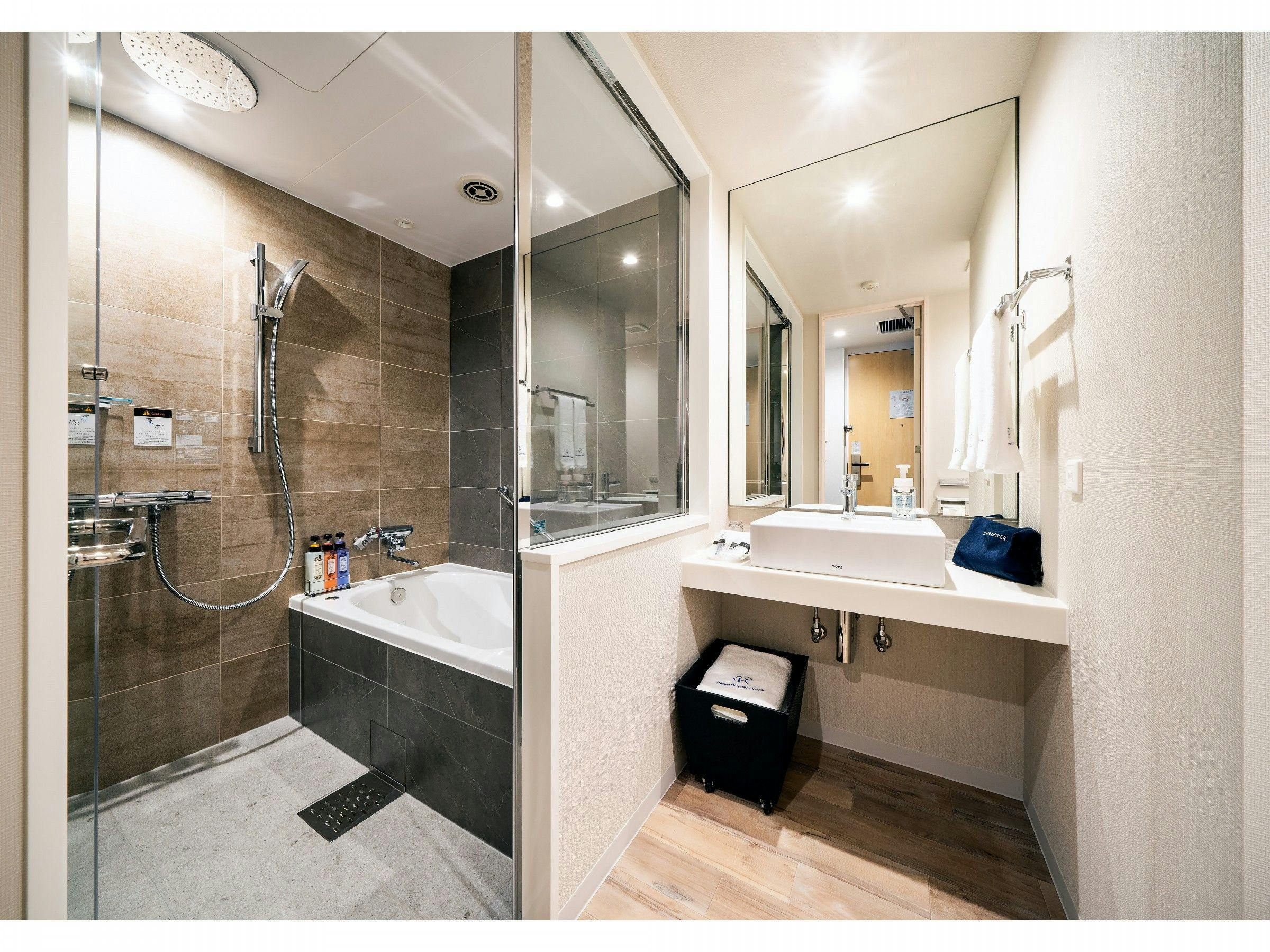 八丁堀駅A4出口目の前!東京駅近くの立地に全部屋24平米以上の広さと贅沢な空間をお届け!女性用男性用各種化粧品はもちろん、種類豊富な無料アメニティコーナーで急な宿泊でも安心!