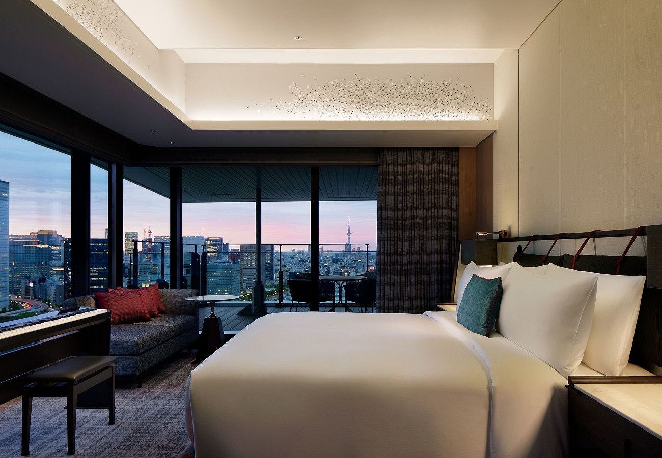 バルコニー付きのガーデンビューから日中は浜離宮恩賜庭園の緑と水辺のコントラスト、夜はベイエリアの煌めく夜景が一望。五感が満たされ、インスピレーションあふれる、新しい東京を感じるホテルステイ。