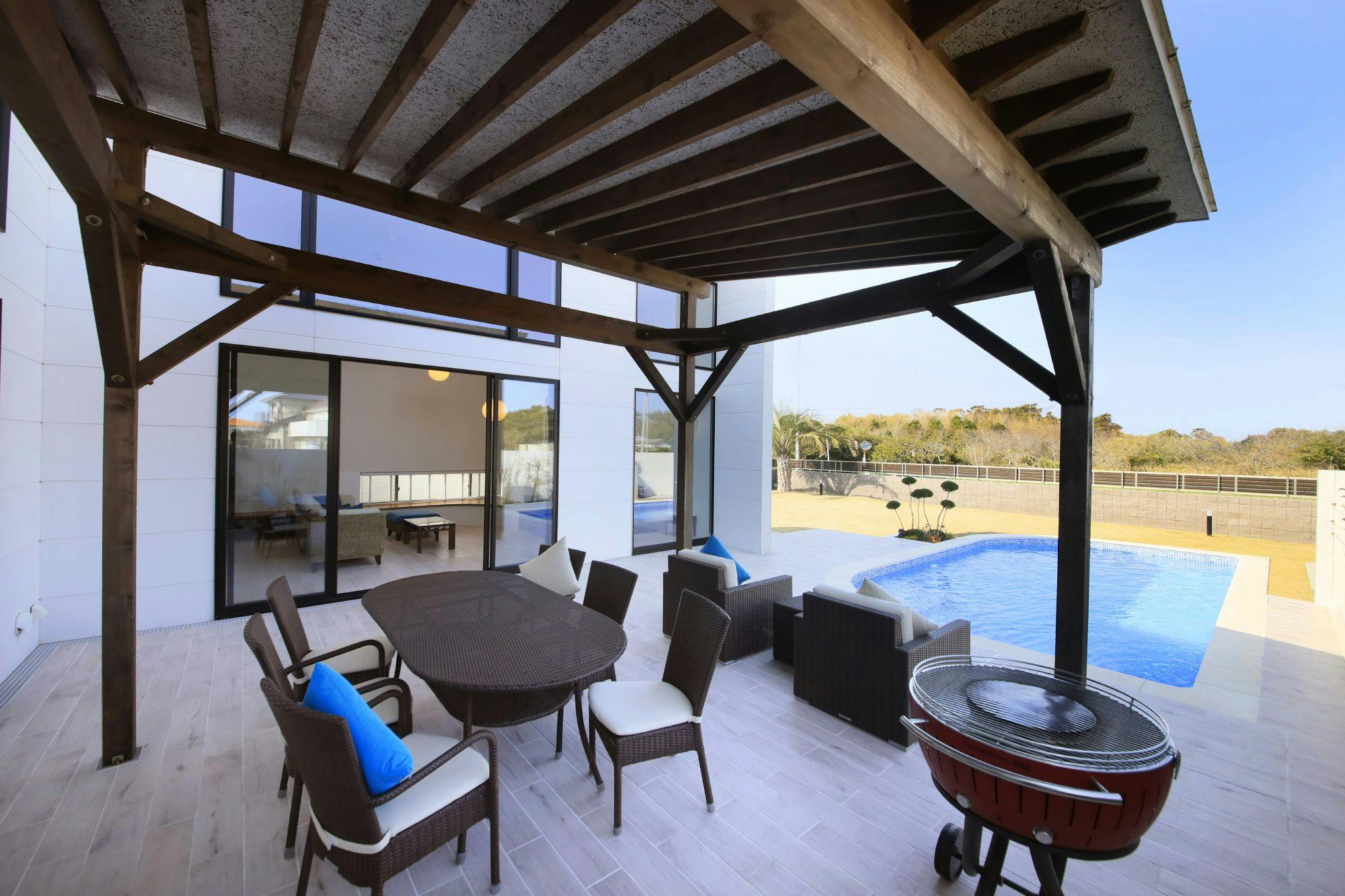 一日一組限定一棟貸。中庭にプライベートプールとファイヤーピット、サウナ小屋がございます。海辺の風が吹き抜ける空間に夜には満点の星空があなたを包み込みます。