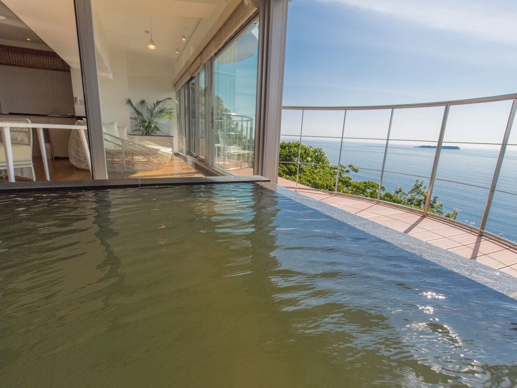 相模湾を望む、熱海伊豆山温泉の丘全室源泉かけ流し客室露天風呂山と海に抱かれ四季折々の時を愉しむ至福の日本料理とともに特別なひと時に出会えるそれが「ATAMI せかいえ」
