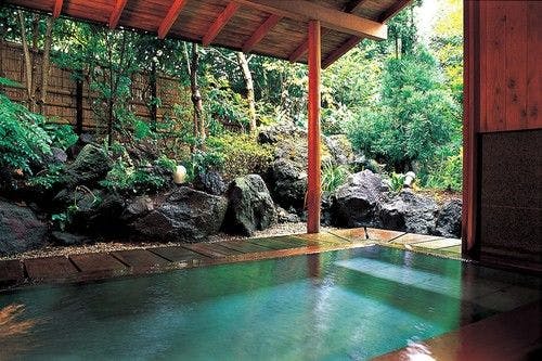 1日わずか6室の隠れ家。森の木立に囲まれた半露天風呂付き離れが人気!3.5m×2mの広い湯舟で野趣あふれる貸切露天風呂も無料。伊東港の地魚や黒毛和牛など厳選食材の懐石料理はクチコミ4.8の高評価。