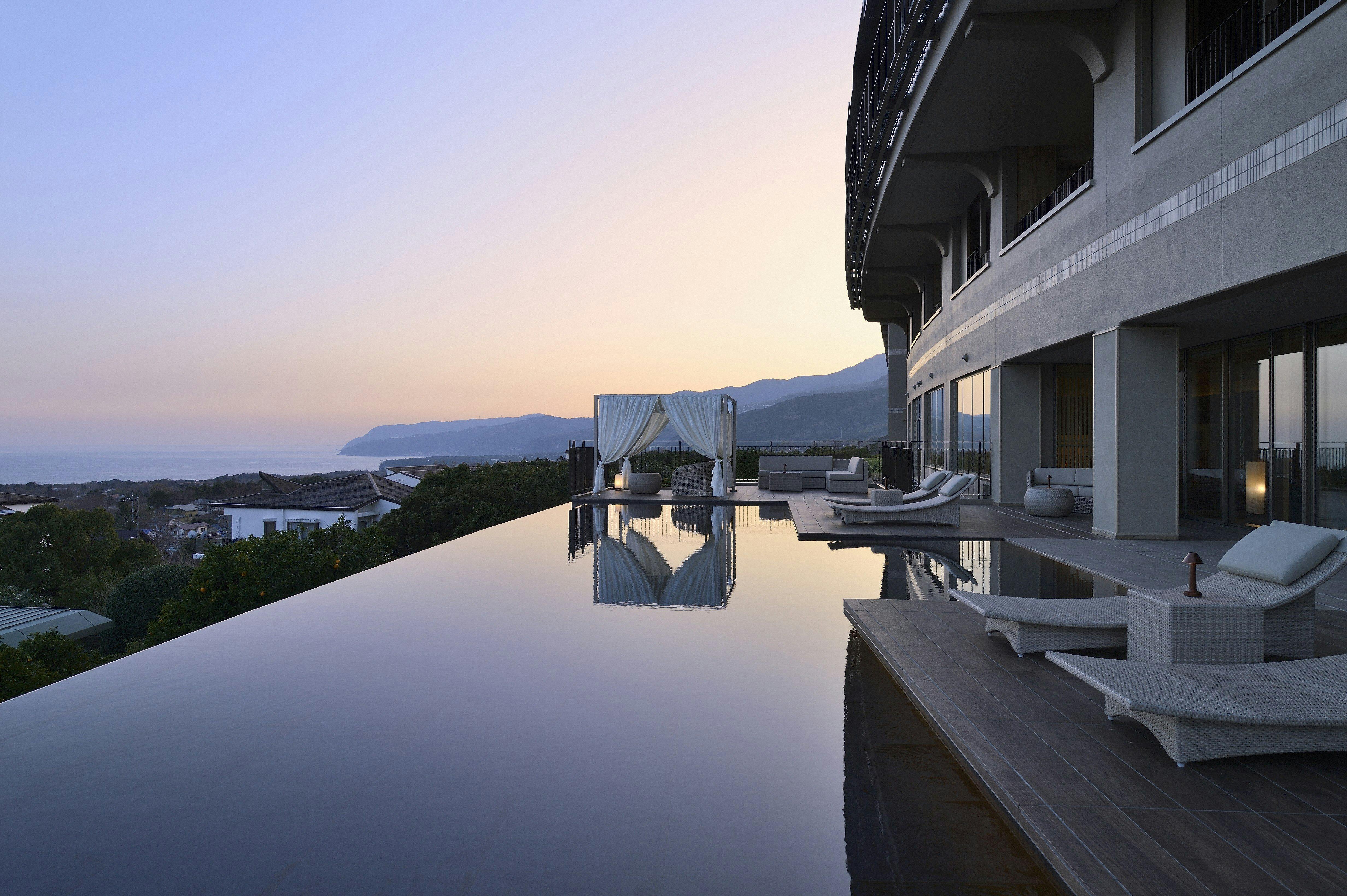 正面に伊豆諸島を望み、ビーチまで徒歩。豊かな自然の恵みを味わい、温泉やガーデンで満喫。格式と伝統の本格的リゾートホテル。駅からシャトルバス直結、ジオや花巡りの拠点にもどうぞ。