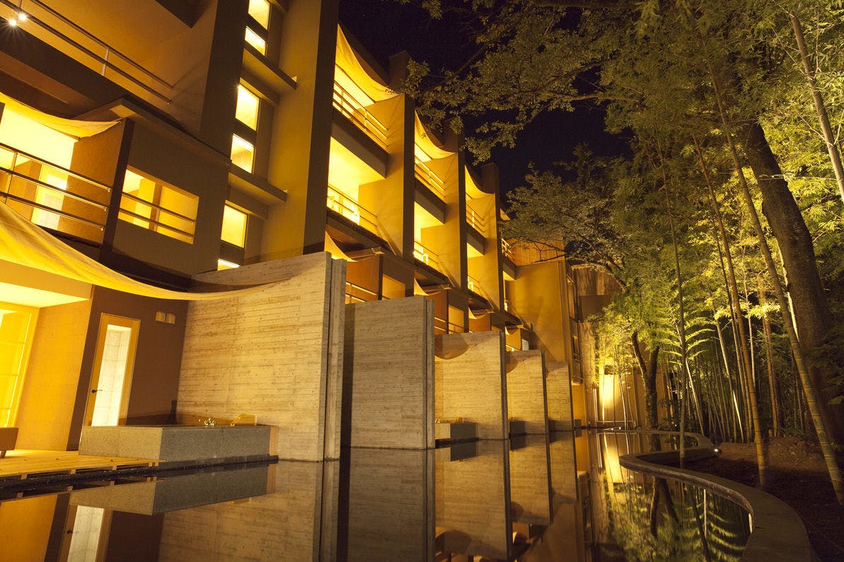 自然の光とリンクした日本を感じる穏やかな空間の中に、箱根らしい力強い岩と草花が深みを演出し、大自然の中にいるようなラグジュアリーリゾートです。