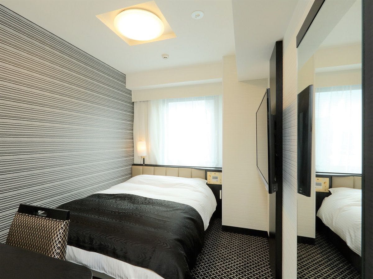 ■名古屋駅まで地下鉄で10分、栄駅12番出口から徒歩6分■シングルルーム全室にダブルベッド導入■シーリングライトで明るいお部屋を実現!TVも50型の大画面!■全客室にミラーリング機能搭載