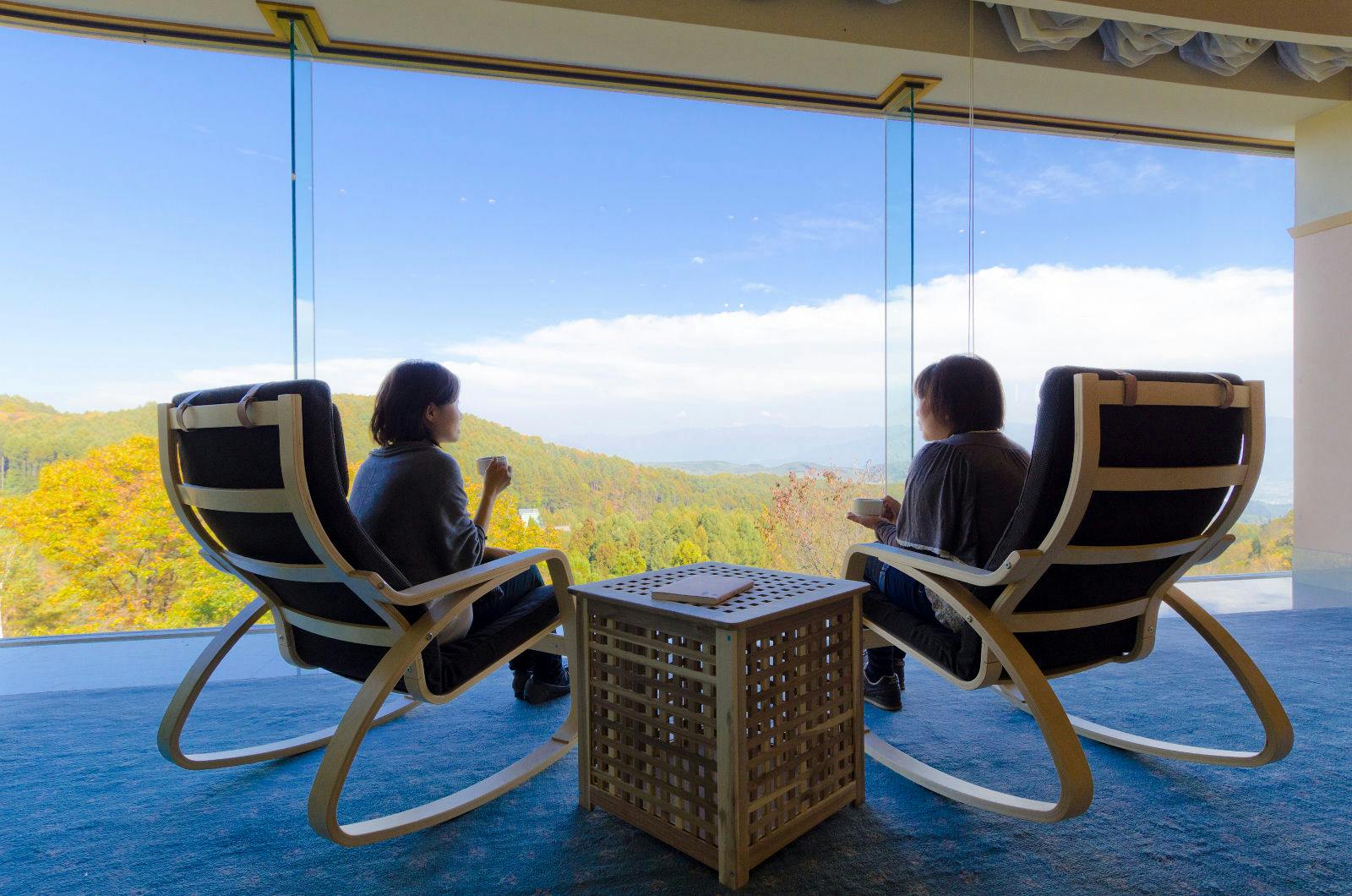 標高1,050メートルに位置する眺望自慢の高原リゾート。美しい星空、夜景、また志賀高原から昇る朝陽や幻想的な雲海など、その景色はまさに絶景。空の上にいるようなラウンジで何もしない贅沢をご堪能あれ。