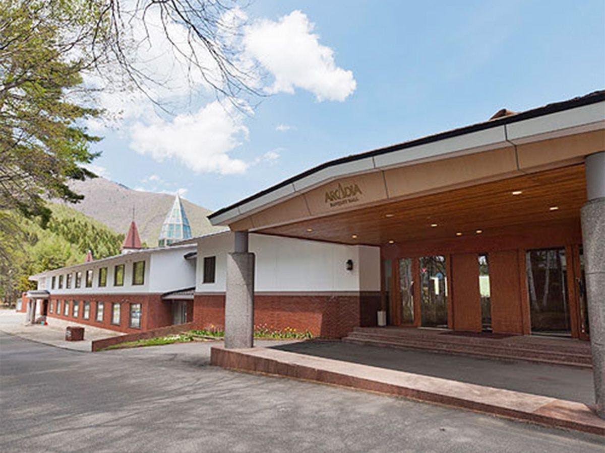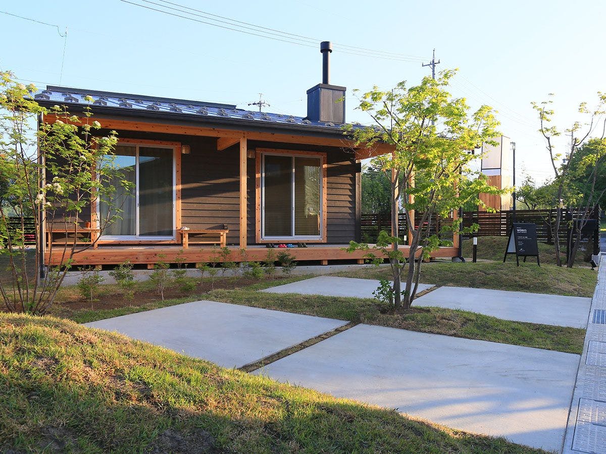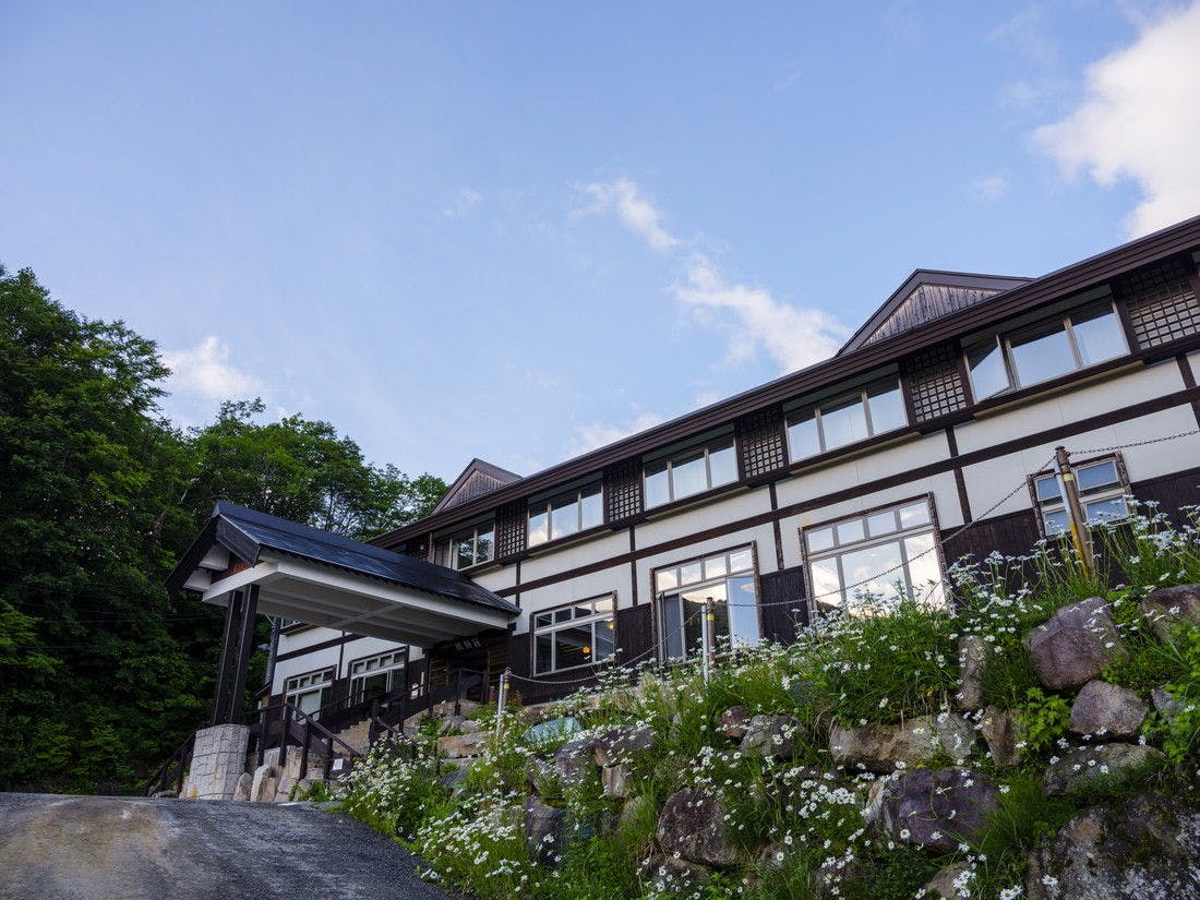 咲花スロープのすぐ近くに位置するソーラーシャレー。自然と一体感を感じられる大きな窓とスタイリッシュな建物は開放感抜群です。