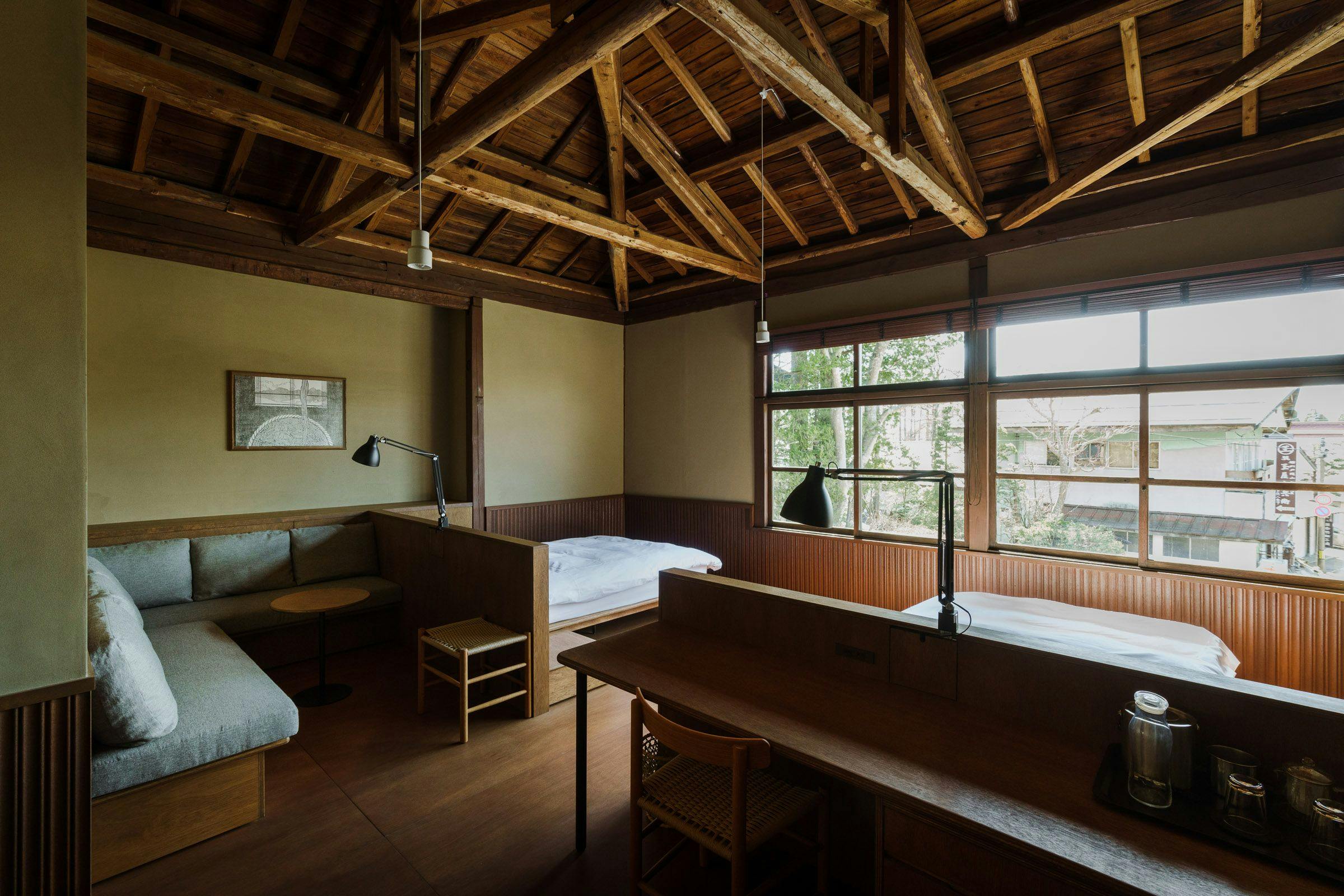 戸隠神社参道に立つ、かつての公民館「旧中社公会堂」。その2階にある、2組限定の小さなホテルです。