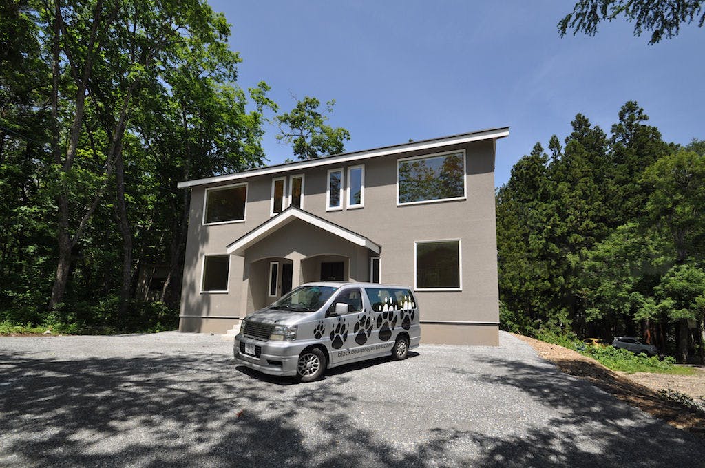 【2017年1月OPEN】閑静な別荘地帯に佇むモダンデザインのシャレーを貸切っていただけます。徒歩圏内にはレストラン街やShop等が揃い、各ゲレンデへの無料シャトルバスのバス停までも徒歩1分!