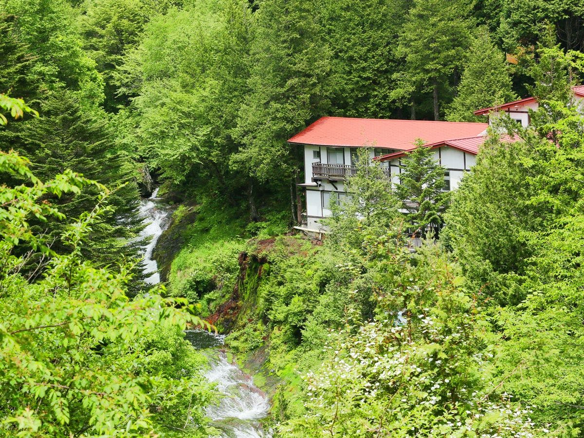 おしどり隠しの滝と渓流を望む秘湯の一軒宿。大迫力の滝と四季折々の風景美を眺め、オレンジ色の源泉に浸かる時間はまさに至福。自家源泉かけ流しの冷泉を含む3種の温泉を持ち、温泉好きには堪らない一軒です。