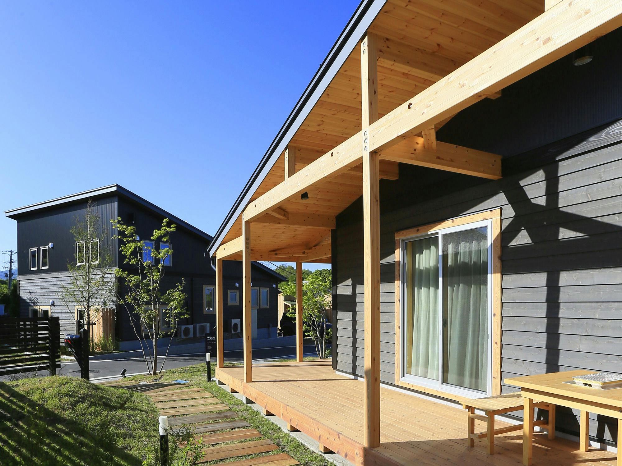 和田野の森の新しい開発地域に位置するシャレー。木のぬくもりが感じられるモダンで広々としたログハウスのオープンスペースでご家族や友人とゆったりとお寛ぎ頂けます。