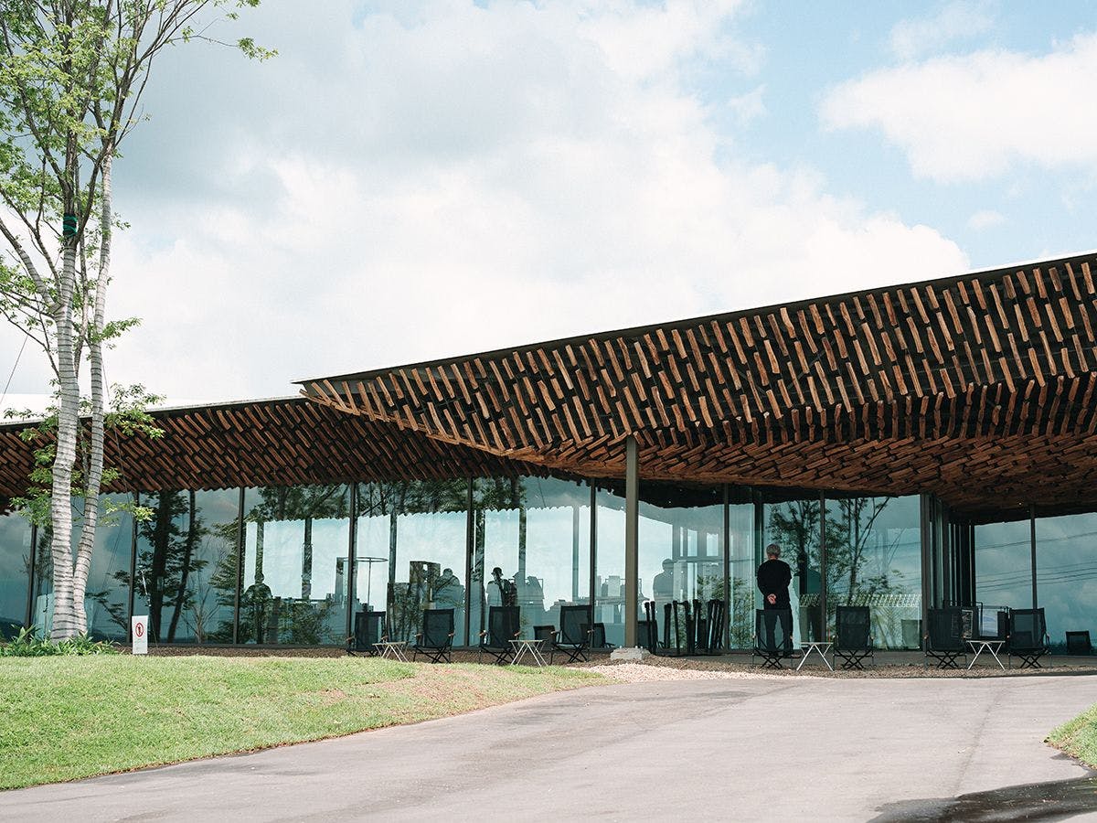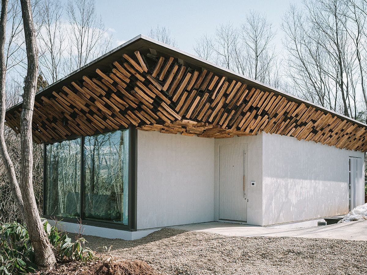 原始的な自然が残る別荘地内に、崖に差し込まれるように建てられた回廊型の建物。展望台のように森に浮かんだリビングと、洞窟のように大地に抱かれたベッドルーム。建物に居ながらにして森と一体となる宿泊体験を。
