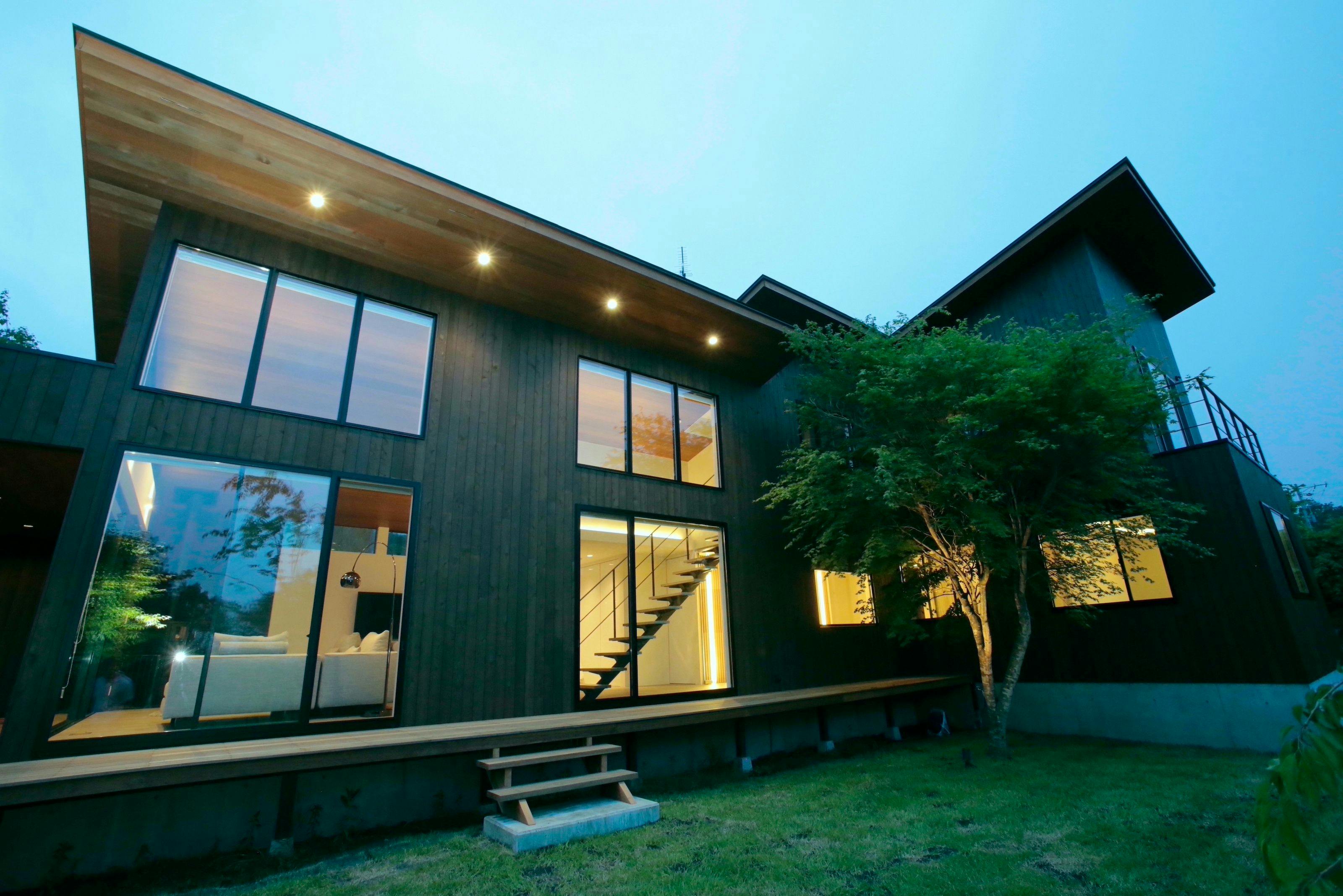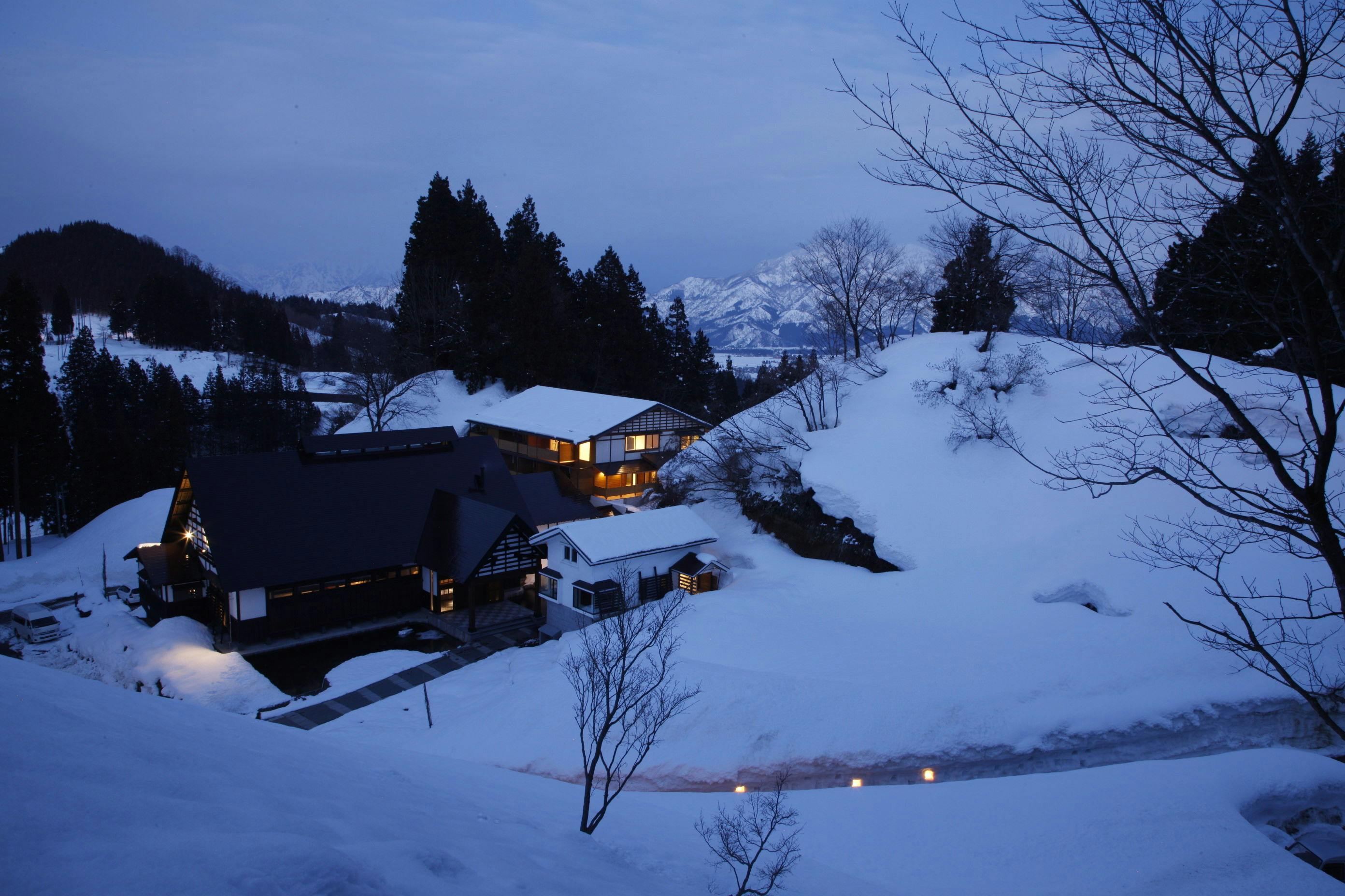 2021年12月NEW OPEN。白馬の中心街エコーランド地区のメインストリートから1本奥に入った閑静な場所に立地。檜を利用した家族風呂や開放的な一面ガラス張りのリビングダイニングが大人気の貸別荘。
