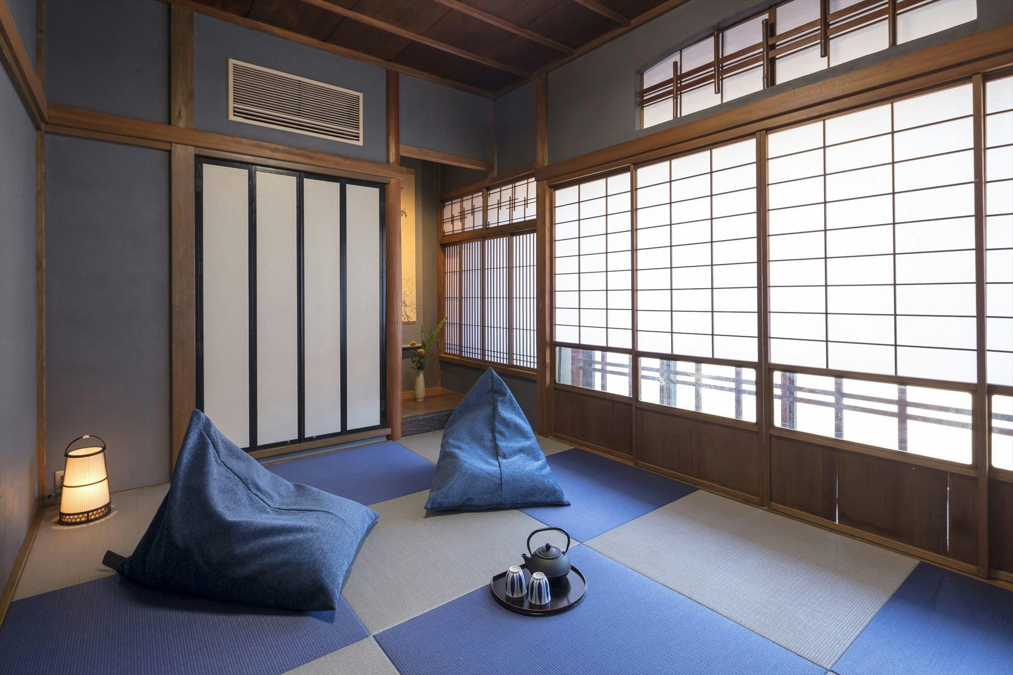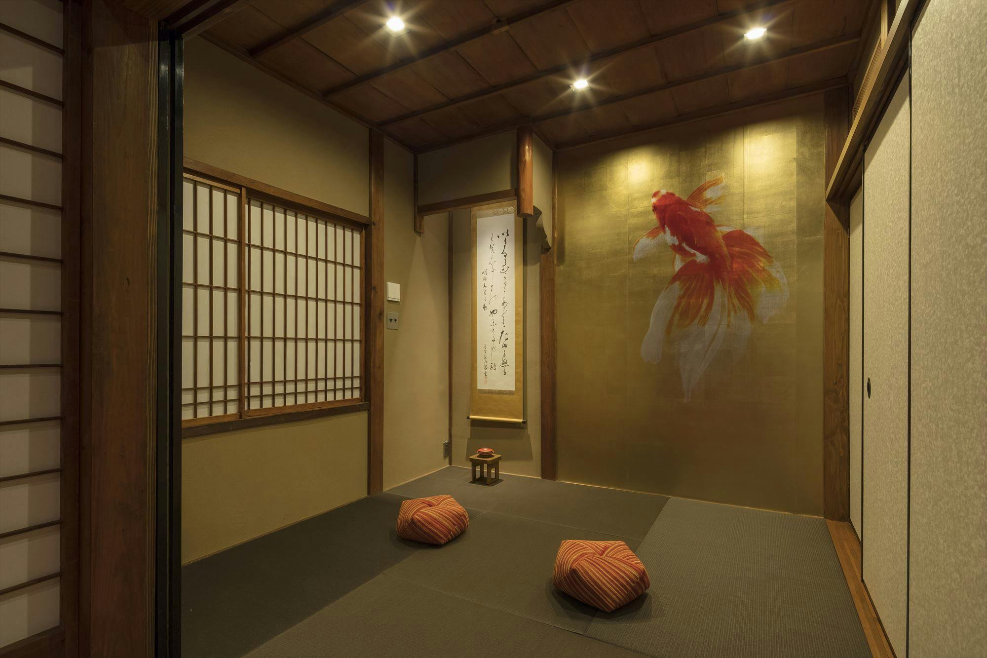 【暮らすように泊まれる、隠れ家風プライベート空間。一棟貸し切り京都(金沢)町家】「近江町市場」徒歩圏内。銀箔と青が煌びやかな金沢町家