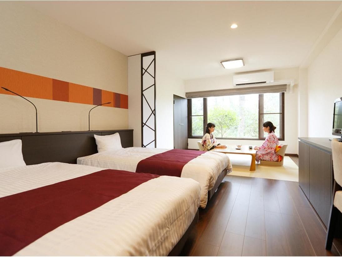 和の伝統と最新設備を兼ね備えたお部屋。風情と趣を感じながら、快適な一時をお過ごしいただけます。