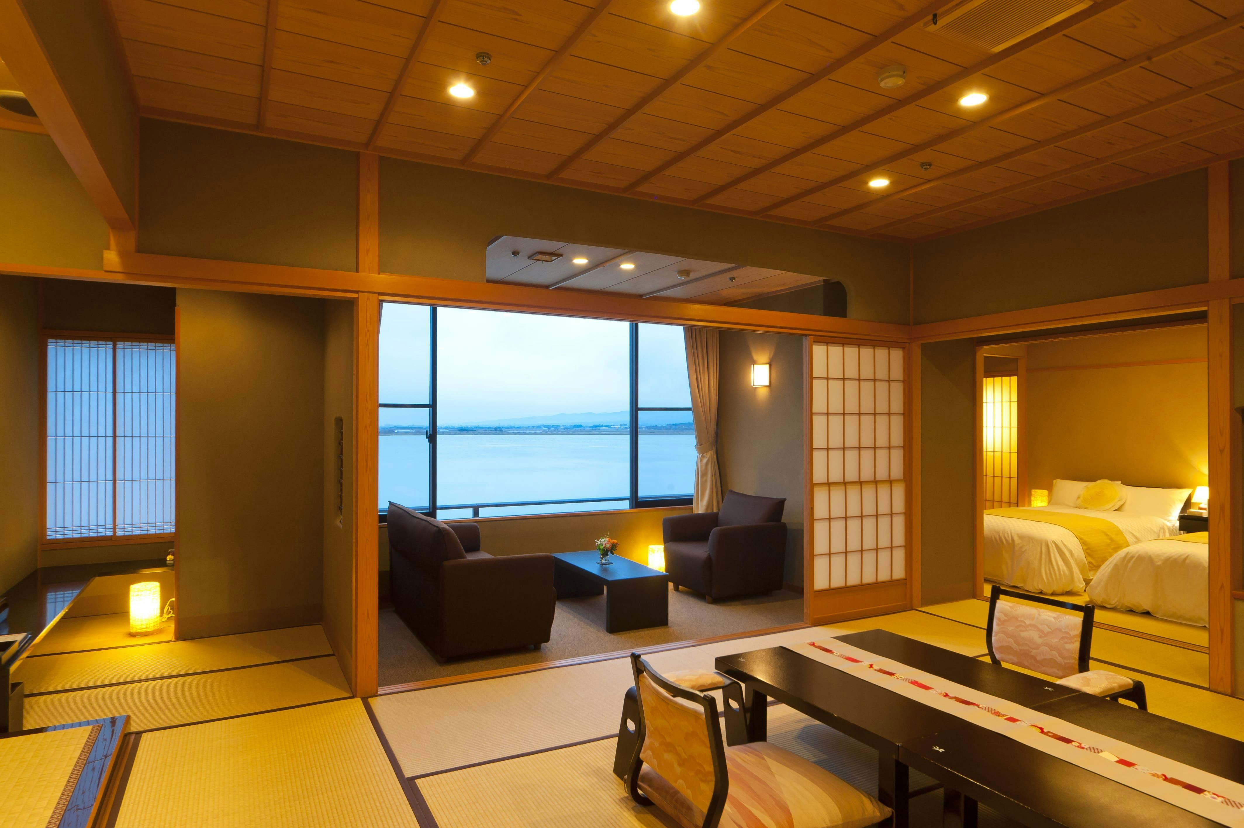 明治25年創業、1日に七度色を変えるという柴山潟のほとりに佇む純和風宿。北陸ならではの海や山の幸に口福舌福。温泉や客室から一面に広がる湖を眺め、寛ぎの時間を過ごしてください。