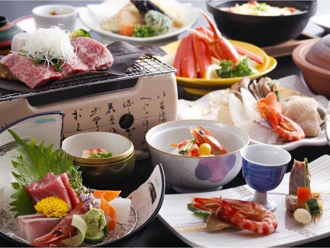 北陸新幹線で沸く金沢からも近く、漁港直送の日本海の幸が味わえる!直前割や女性半額、一人旅や部屋食も対応可。美肌の温泉100%の貸切露天や源泉かけ流し露天風呂付き客室で混浴も。