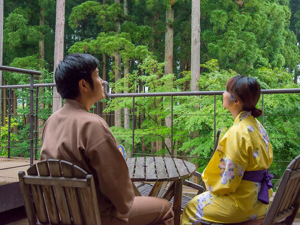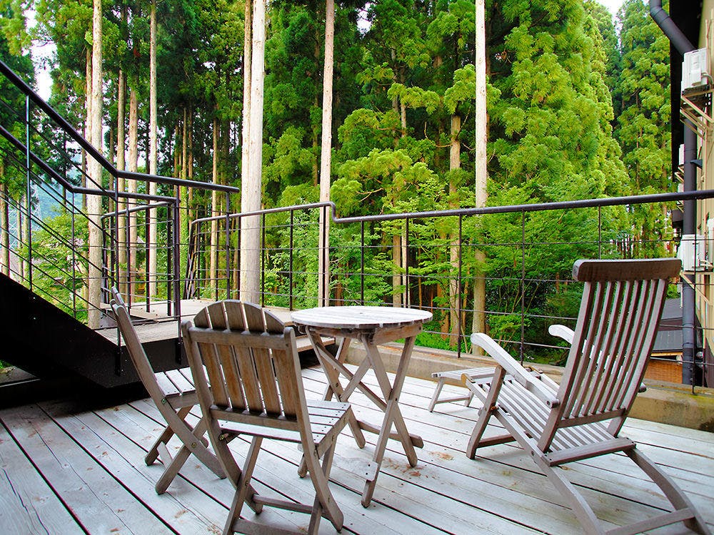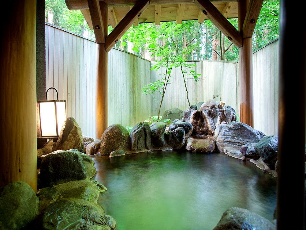 白山麓に佇む、人里離れた秘湯の一軒宿。大自然に抱かれた混浴露天風呂は屋根が一切なく、開放感抜群。かけ流しの温泉に浸かりながら、星空や緑を眺められます。6月から11月までの限定営業です。