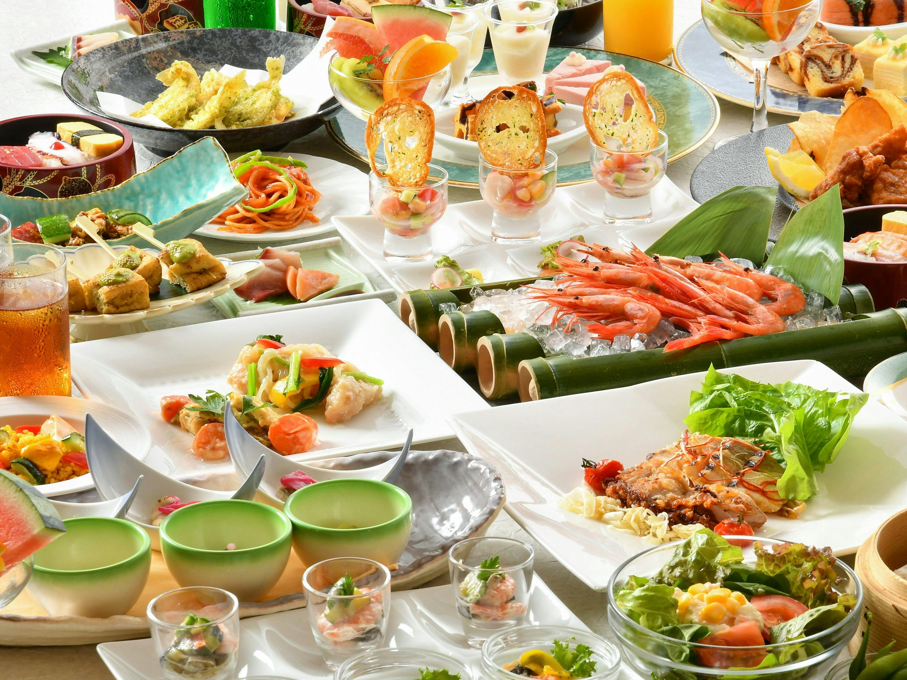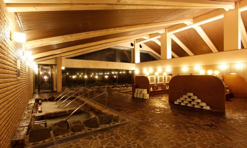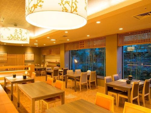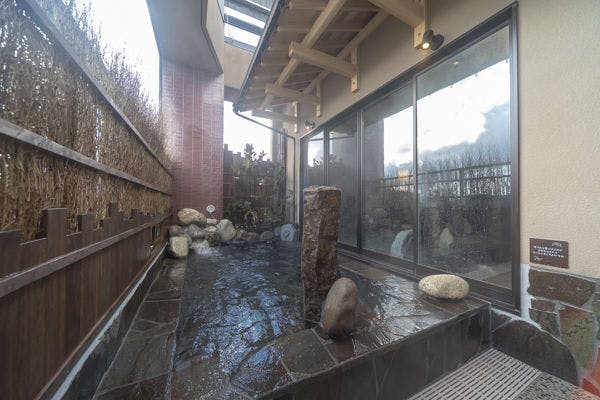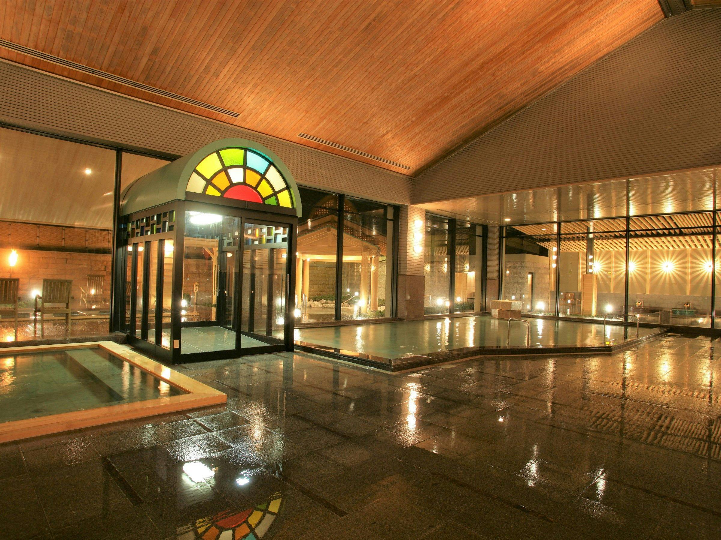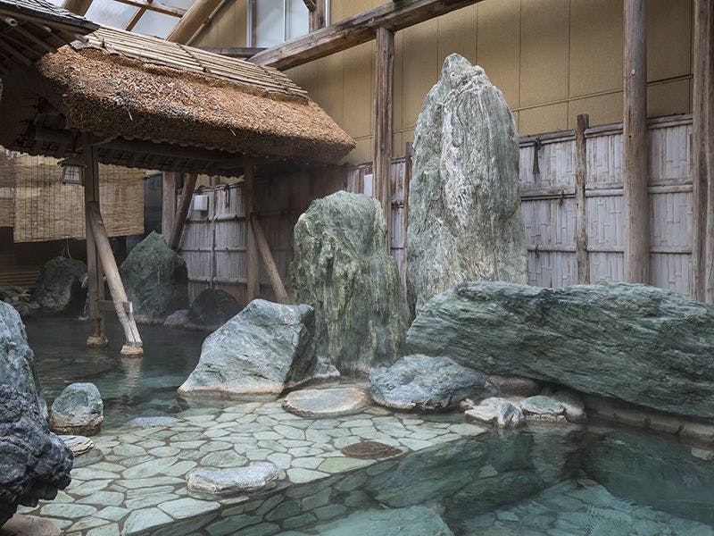 北陸最大級の庭園露天風呂を始め、多種多様な温泉を楽しめます。食事は食事処「虹」にてオープンキッチンで出来立てお料理を楽しめるビュッフェプラン、落ち着いた雰囲気の食事処「咲楽」での会席料理など選べます。