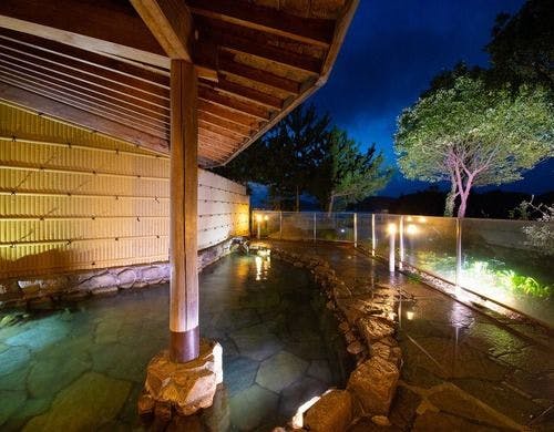 自然豊かな湯の山温泉に佇む湯宿。大浴場の内湯は24時間入浴可能、2つの貸切風呂は平日無料です。また地元の食材にこだわった季節の会席料理も人気。ペット預かり処や夏季の屋外プールなど設備も充実です。