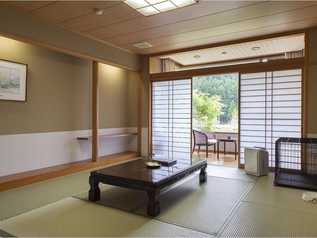 全室わんちゃんOK!大自然に囲まれたドッグランやアジリティで遊ぶもよし、清流のほとりをお散歩するもよし。天然温泉「香肌の黄金湯」と、松阪牛や新鮮魚介を使った懐石料理が自慢のペットと泊まれる宿。