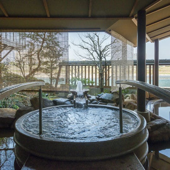 下呂温泉は「美肌の湯」として古くから知られ、お肌に優しくからんで、絹のようにスベスベにしてくれます。 100帖空間の畳風呂は「畳文化」の美しさ・優しさ・くつろぎ、安らぎ感を与えてくれます。
