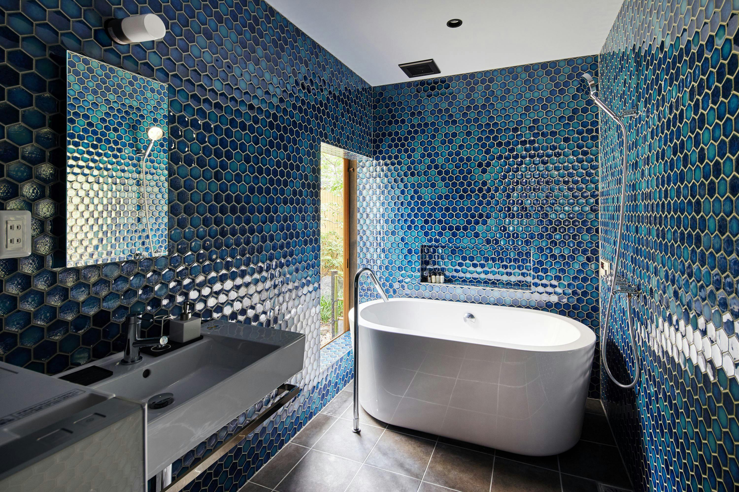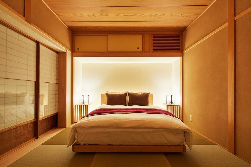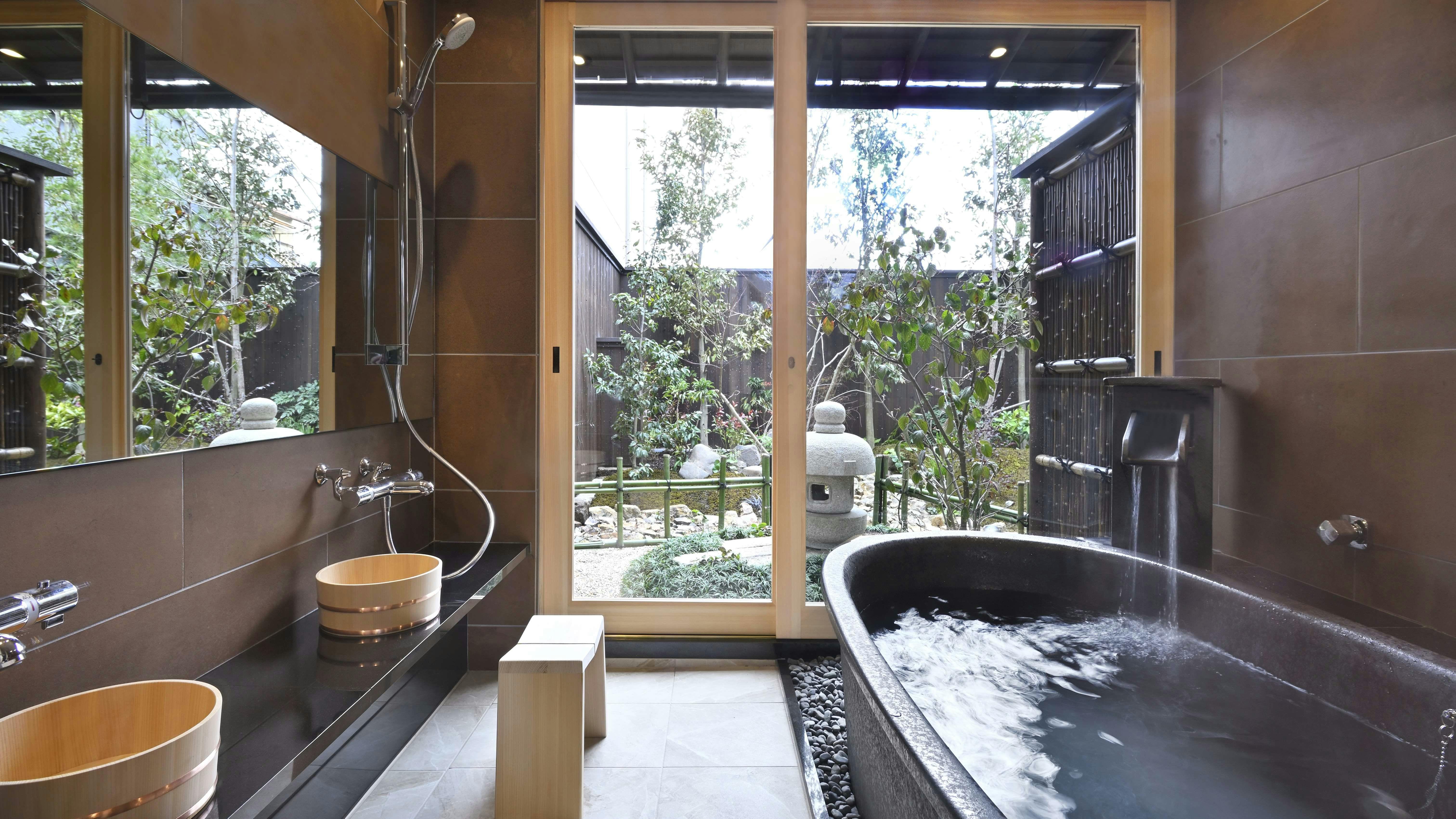 天窓から優しい光が差し込む吹き抜けのバスルームは、露天風呂とはまた違った開放感を味わえます。坪庭に臨むベッドルームや窓から見える寺院は、お部屋の中にいながら京都らしさを感じることができます。