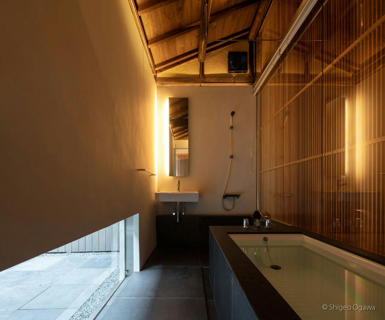 ご家族やグループにもおすすめの1日1組限定一戸建ての離れです。お風呂は開閉式の半露天風呂を採用しており、閉めれば内風呂、開ければ半露天風呂をお楽しみいただけます。