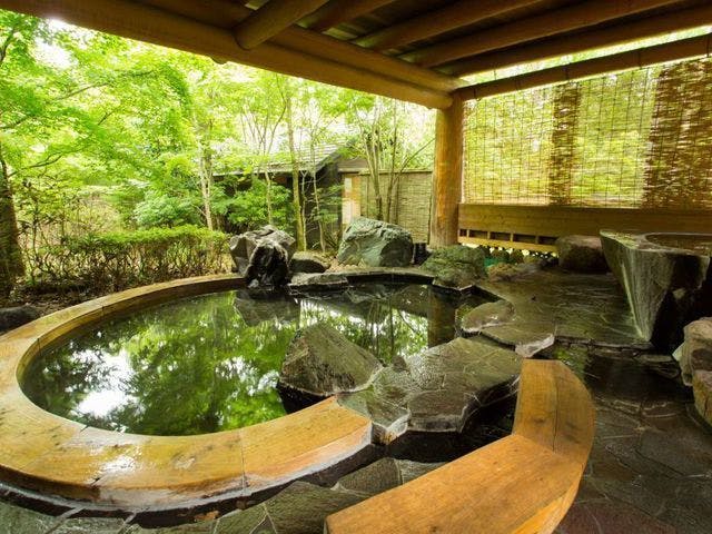 地下1000mから汲み上げる湯量豊富な自家源泉。由布岳を望む露天風呂、季節ごとに表情を変える庭園を楽しめる。大人の隠れ家「湯布院高原 ふうきの里」