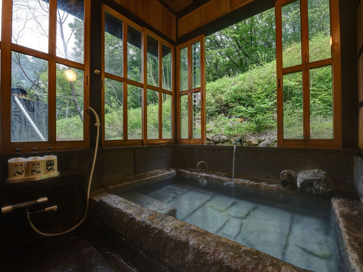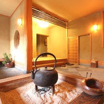 お部屋は全てゆるやかな渓流に隣接しており、大自然に囲まれた開放感のある露天風呂と内風呂付の離れで静寂なひとときをおくつろぎいただけます。