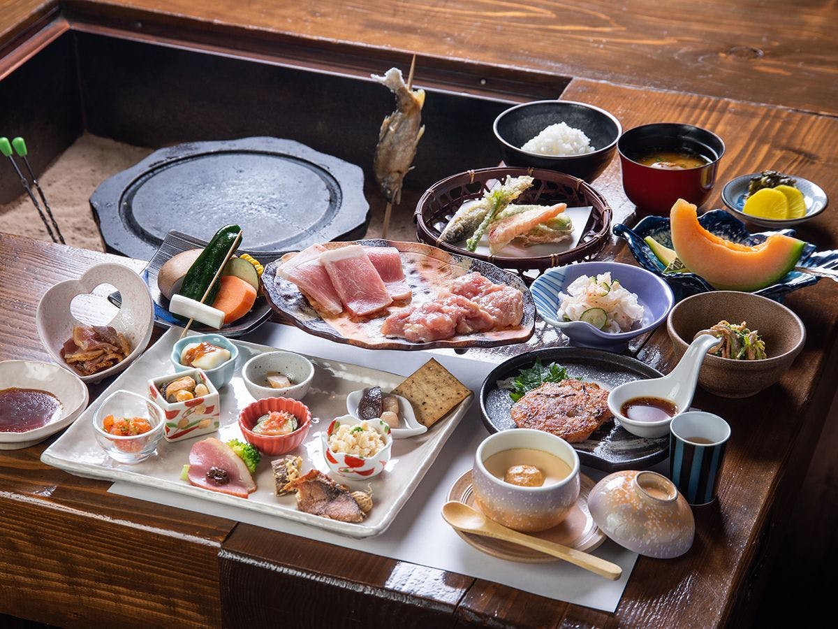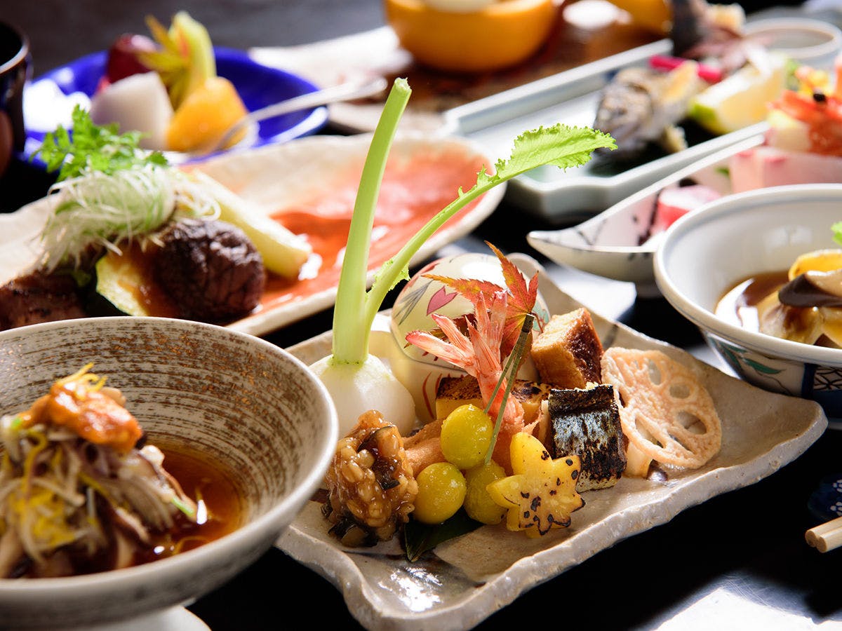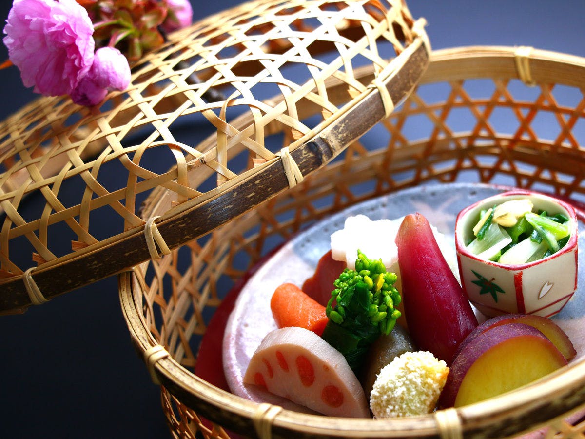 色彩鮮やかな創作料理が楽しめる由布院有数の料理宿。地元の野菜を中心に調理される料理はその日の仕入れによってメニューが異なります。視覚でも楽しめる絶品料理はお部屋にてご堪能頂けます。