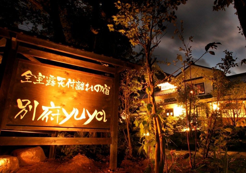 「全室露天風呂付離れの宿」自然豊かな鶴見岳のふもとに佇む温泉宿。源泉かけ流しの天然温泉を広々とした露天風呂でゆっくり楽しめる完全プライベート空間!泊食分離でのんびりとプライベート時間をお楽しみ下さい。