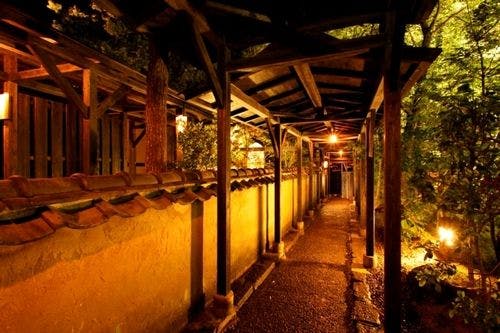 6000坪の敷地に戸建離れの温泉付き客室が点在する純和風旅館。鳥の囀り、水の音に包まれた自然豊かな敷地内は四季折々の花・景色に彩られます。金脈から湧き出す「金の湯」は“さらり”となめらかな美肌の湯。