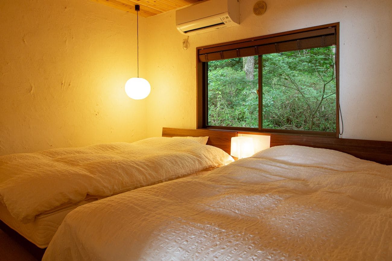 日常の喧騒から離れ、心と体を癒すことのできるリトリート施設。大分県在住の作家が丹精込めて創り上げた隠れ家です。天然素材の壁や床は素足での触感を味わってください。睡眠にこだわった寝室も堪能できます。