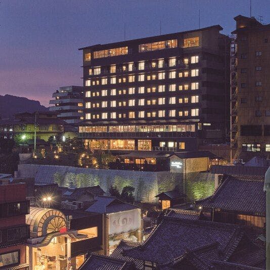 道後温泉の引き湯を使用した温泉付ホテル。伊予鉄城南線 大街道徒歩約2分、道後温泉街まで路面電車で約15分と、ビジネスにも観光にも最適な好立地です。