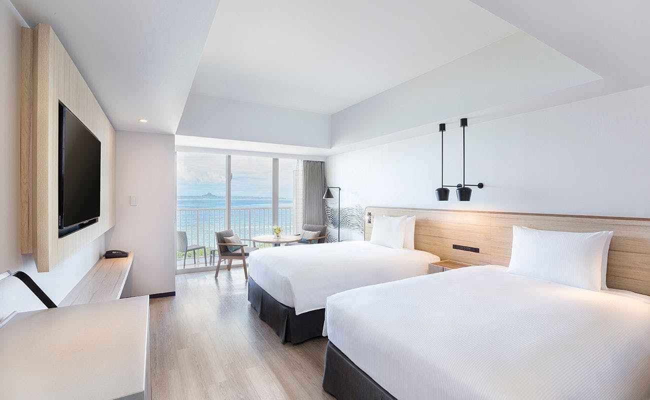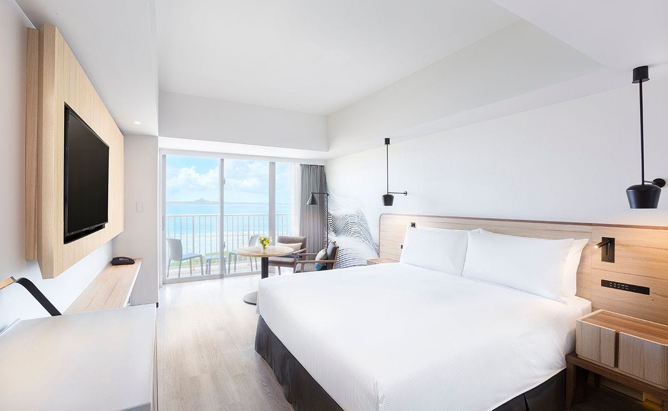 ホテル目の前は夕陽が美しいサンセットビーチ、ショッピングやグルメを満喫できるアメリカンビレッジなど沖縄を満喫できるロケーション。リゾート感溢れる客室は日常を忘れ、のんびりとした時間をお過ごし頂けます。