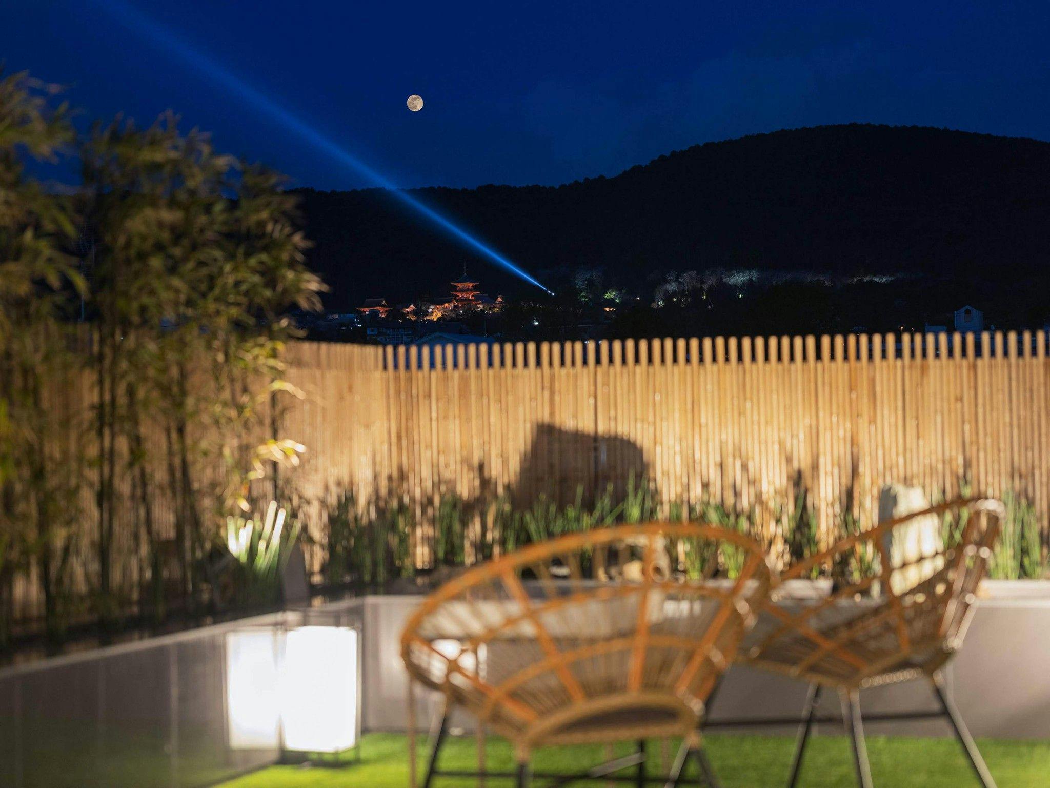 ホテルの至る所には竹を用いたアートを設え、竹の持つ美しさを館内に配しています。月を愛でる専用空間を屋上庭園に設けました。 月光を浴びて過ごす特別なひとときをお過ごしください。