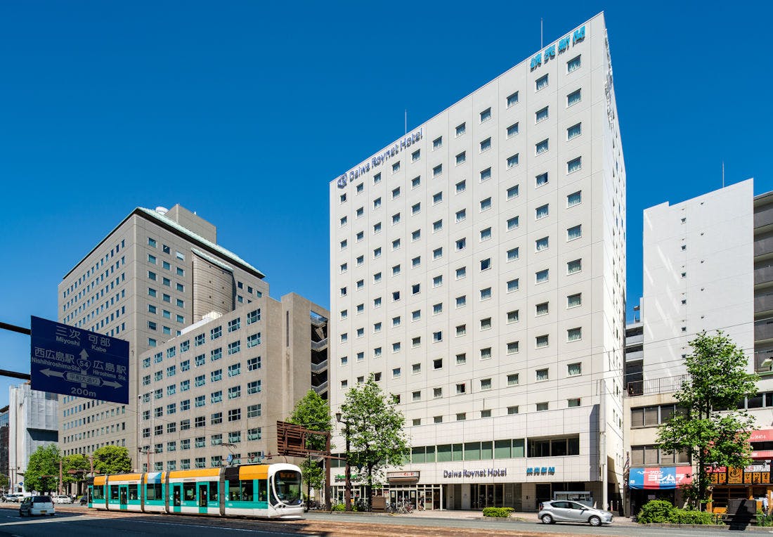 広島市の中心地に位置し、ビジネスや観光の拠点におすすめです。市内路面電車「中電前」より徒歩1分。全231室のお部屋には、広めのデスク、ズボンプレッサー、加湿機能付空気清浄機を備えております。