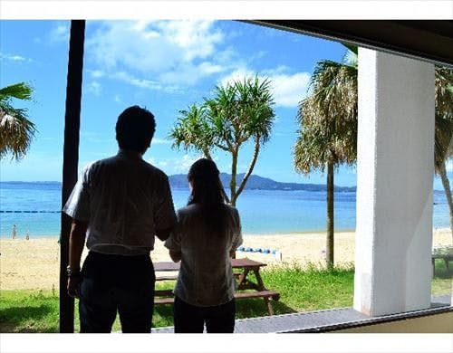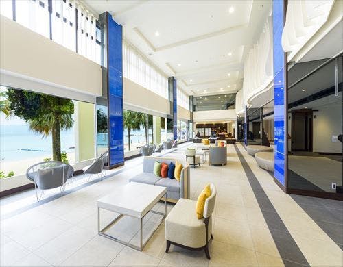 沖縄西海岸、喜瀬ビーチのすぐそばに位置し、ビーチまで徒歩1分という好立地。オーシャンビューのお部屋からはエメラルドグリーンの海を一望できます。マリンジェットやドラゴンボートなどのアクティビティも充実。