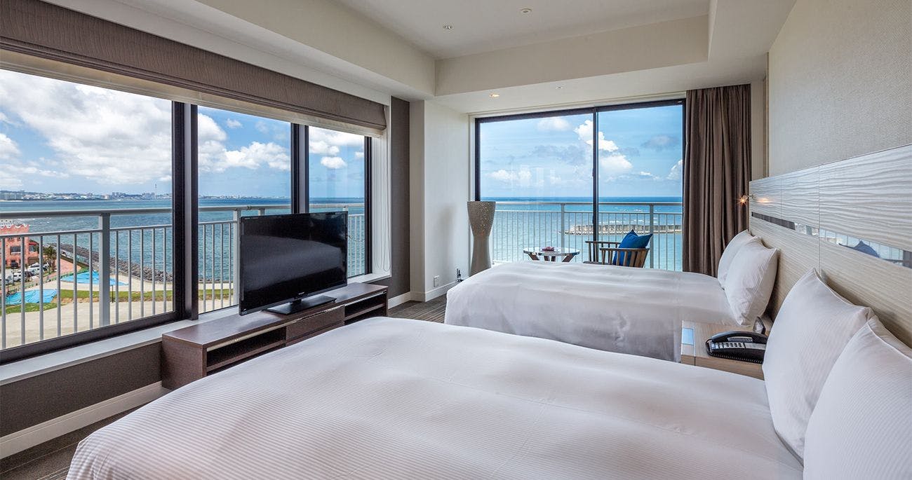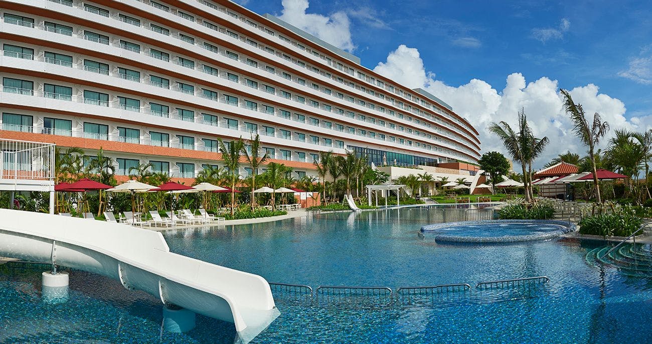 【那覇空港から車で約40分】美浜アメリカンビレッジに隣接。 那覇市内へも美ら海水族館などの北部へもアクセスが便利なロケーション。県内最大級・最大5つのプールが利用可能!ビーチやショッピングも徒歩圏内