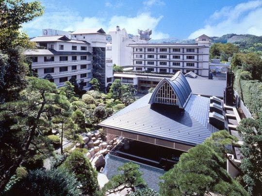 大正の面影に現代建築の美を調和させた木造2階建の純和風旅館。潮騒が響く回遊式庭園には樹齢200年の老松が群生。夕食は隆太窯の器で玄界灘の新鮮な魚介類の会席料理。