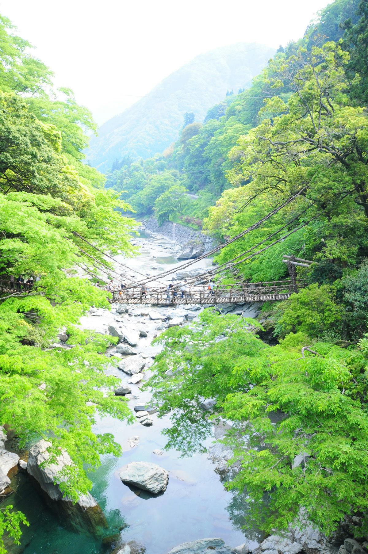 祖谷の里随一の名勝「かずら橋」から徒歩10分の距離に位置する渓谷の宿。早朝深山幽谷より立ち上る霧の風景は一見の価値あり。眩しい緑、鳥のさえずり、せせらぎの音。 川の幸を中心とした田舎料理も好評です。
