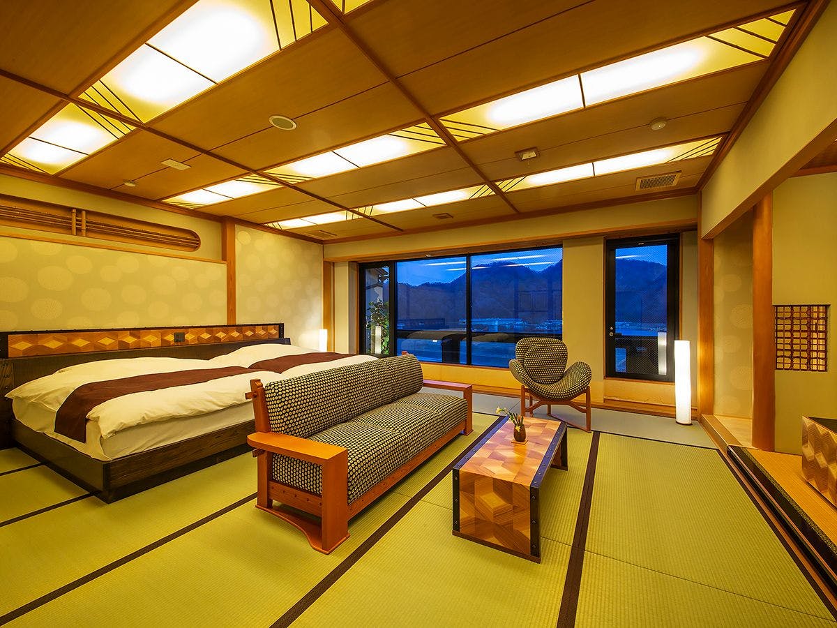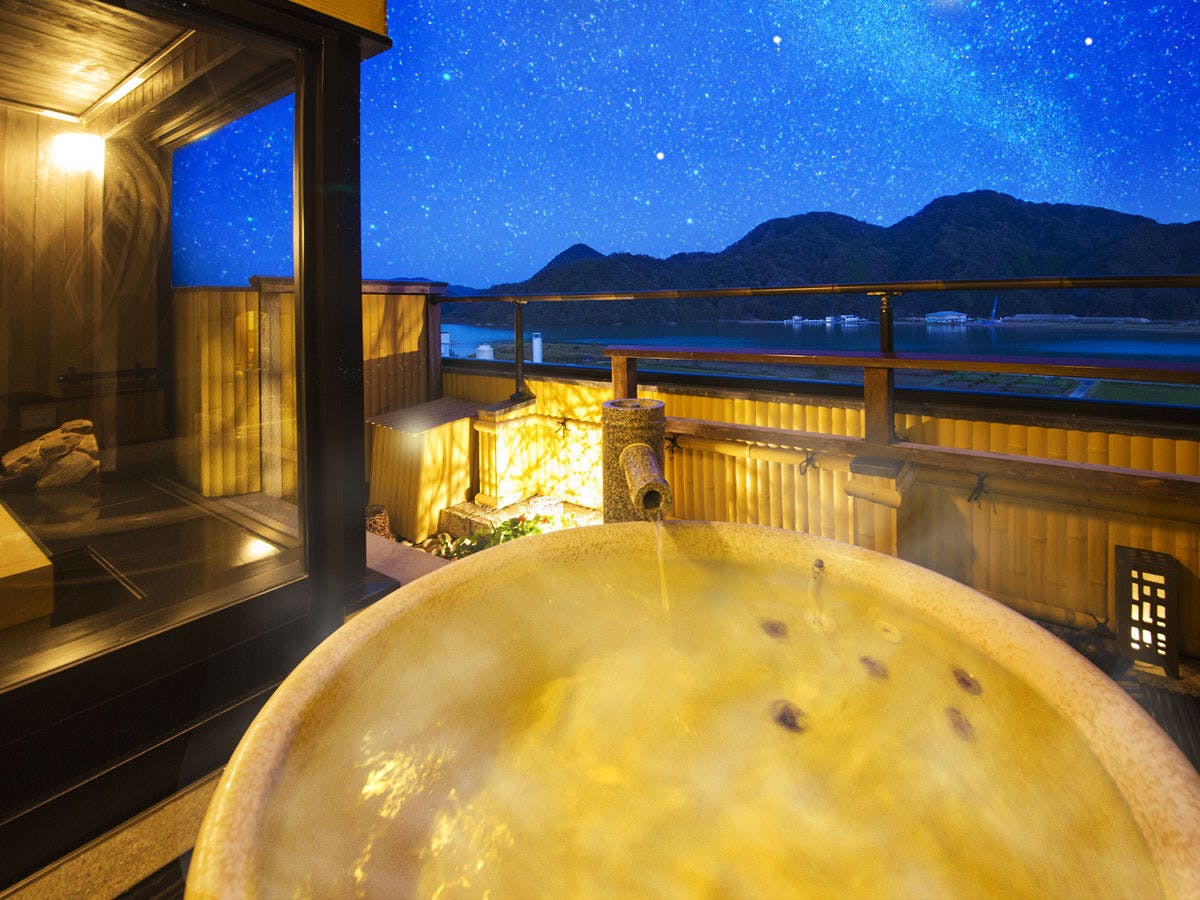 湖上に浮かぶ絶景の宿。どの浴場からも東郷湖が眺められ、朝夕それぞれの自然が織り成す表情とともに源泉掛け流しの湯の良さをお愉しみ頂けます。地元食材や和の情緒溢れるお部屋で寛ぎの休日をお過ごし下さい。