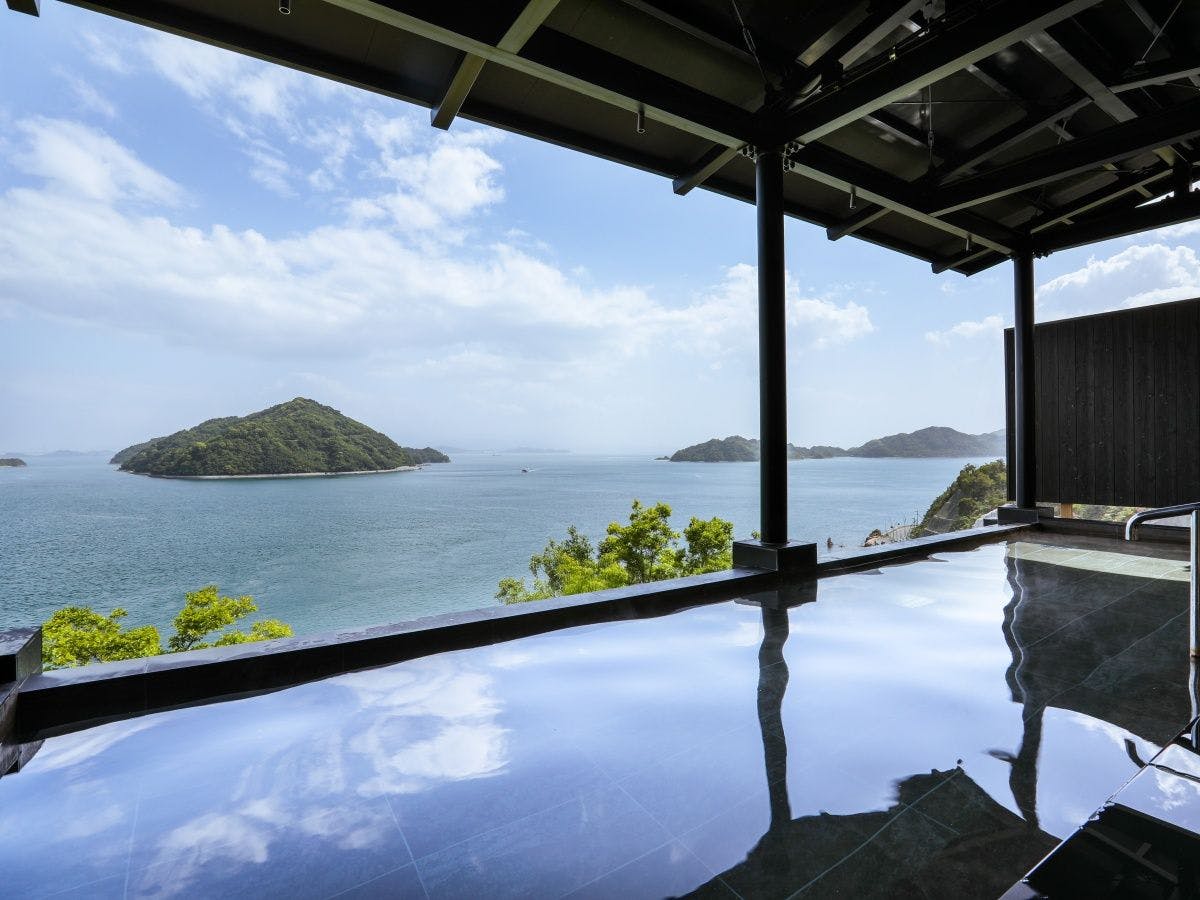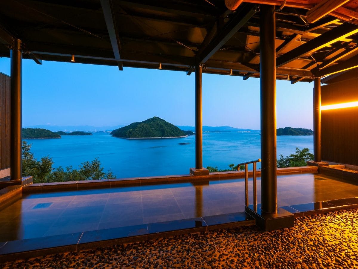 「島の宝百景」にも選ばれた瀬戸内海の絶景を望む宿。瀬戸内海の大パノラマを望む露天風呂からの景色は圧巻です。お食事は鮑や瀬戸内の幸満載の会席をご堪能あれ。ゆっくり流れる島時間を満喫できる一軒です。