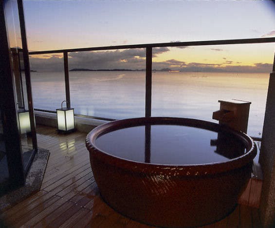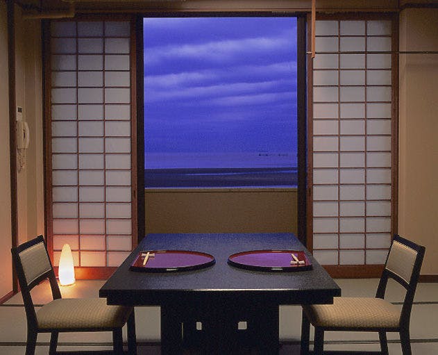 目の前には唐津湾。ロケーションは抜群。全国的にも珍しい“汐湯”と旬の食材が織りなすホンモノの贅沢。インターも近く福岡からのアクセスも良好!しっとりした雰囲気漂うモダンな旅館で大人の休日を。