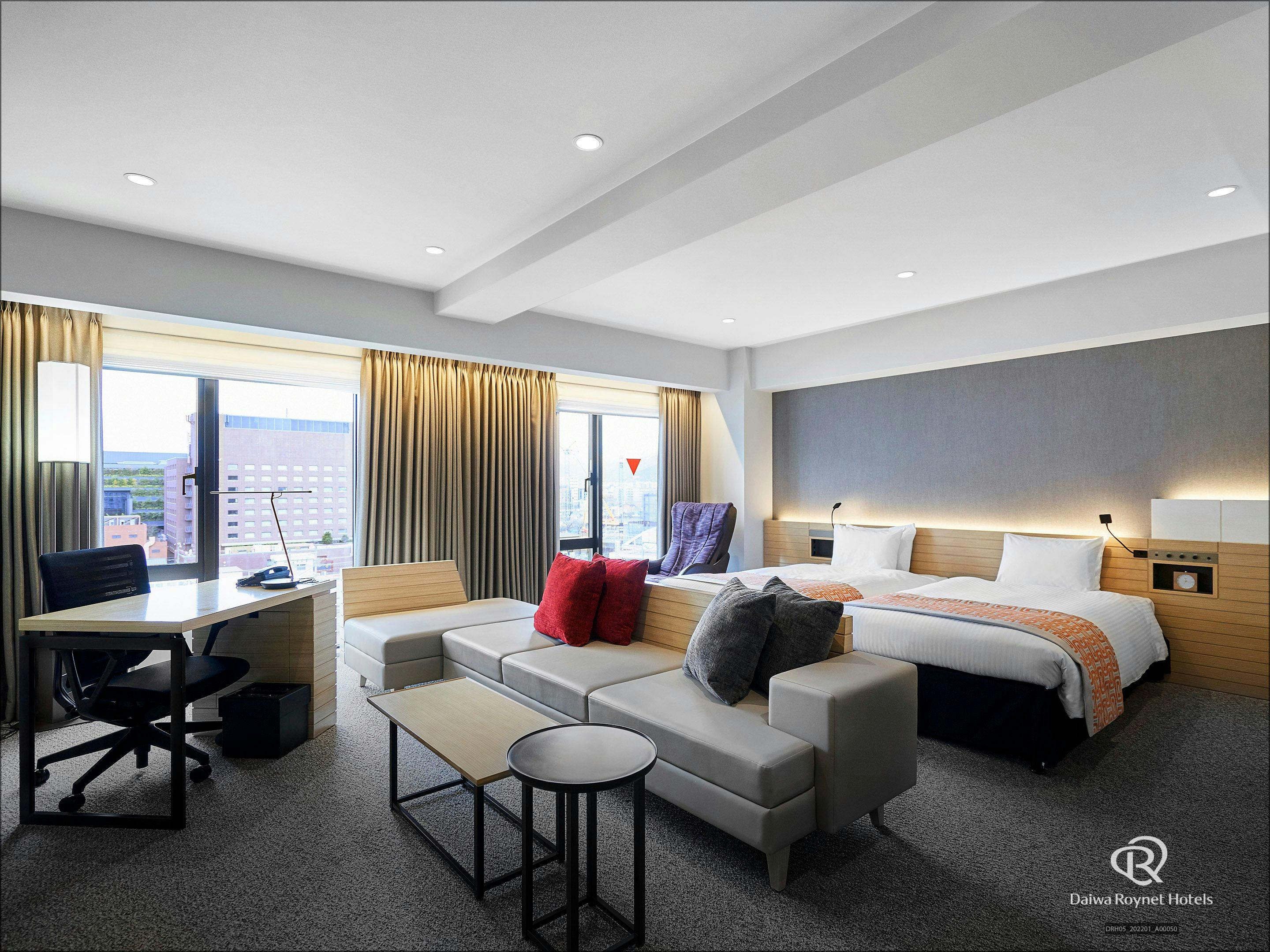 京都駅八条東口から徒歩3分の好立地。観光やビジネス利用者に最適のロケーション。洗い場付きバスルーム、独立洗面台&お手洗いを完備。無料のお飲物を楽しめる宿泊者専用ラウンジもあり。