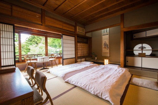 文人たちが愛した京都東山。一棟貸のお部屋からは、七代目小川治兵衛の作庭による庭園をご覧いただけます。寺院に囲まれた落ち着いた雰囲気の中、非日常な空間をお楽しみください。