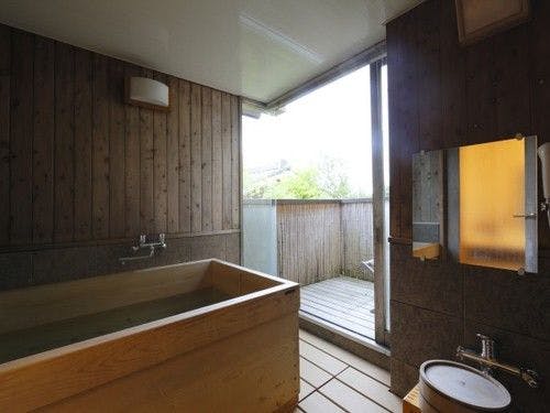 木の温もりに包まれて、和室には囲炉裏、洋室には暖炉、そして各部屋に露天風呂と、温かい空間の中でゆったりとした時間をお過ごしいただけます。