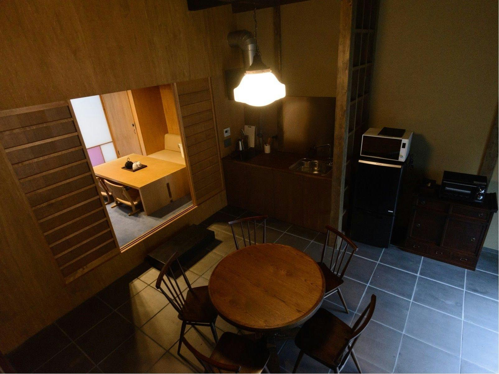 囲炉裏付き京都町家の一棟貸し、一日お一組様限定です。アメニティも充実、お一人様からグループまでご利用いただけます。京都老舗懐石料理のお食事つきプランもご用意しております。